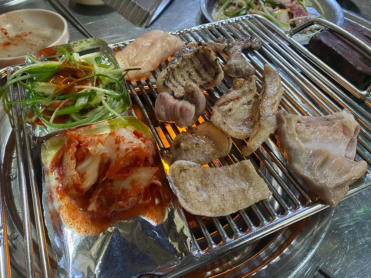 염통, 유통, 항정, 새끼보, 갈매기, 생막창까지. 가격대비 구성하고 있는 부위는 참으로 실하다. 다만 그만큼 부위별 호불호는 갈릴 수도 있으니 이 점을 유의하면 좋겠다. 부속은 자투리 부위다 보니 양념이 되어있지만, 그래도 돼지향이 강한 부위도 있을 수가 있다.