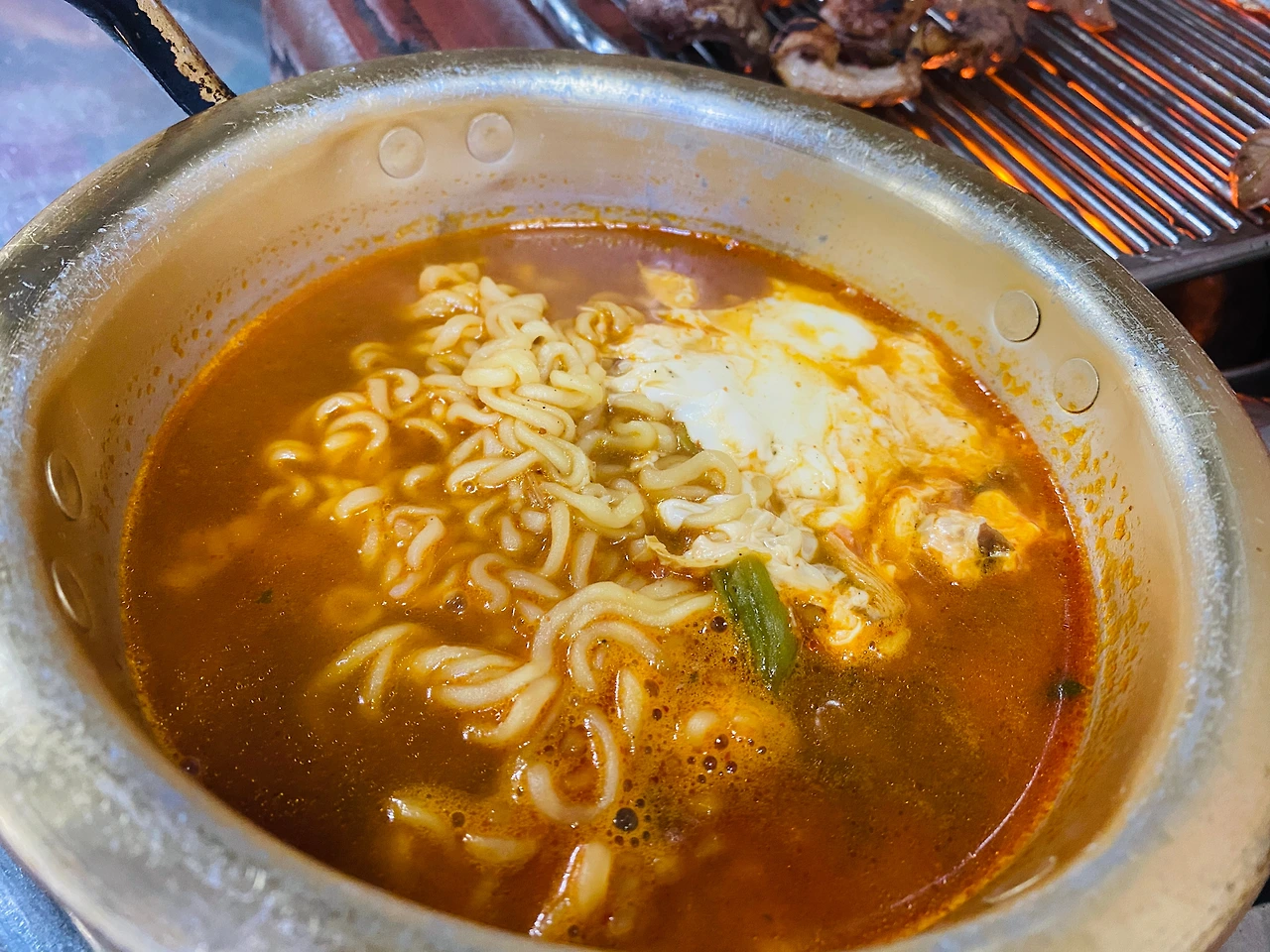 3천원의 라면이 흥분된 입 안의 전투를 진정시켜준다. 불과 화력, 투박하고 거친 부속 한 상의 진정제. 마무리 또한 실망을 시키지 않는구나.