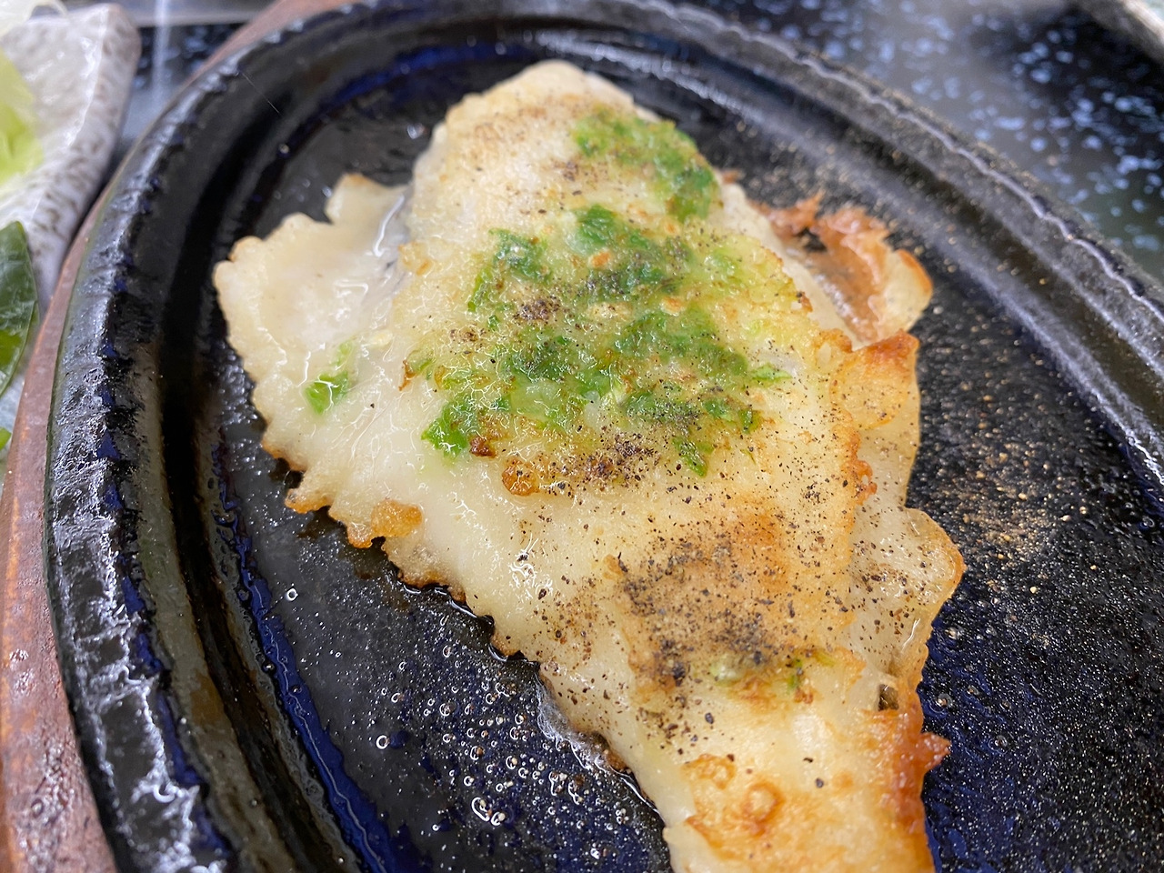 '박선장횟집'의 홍우럭 튀김. 생선 겉면에 다친고추와 튀김옷을 살짝 입혔으니 튀김에 가깝다고 하겠다. 생선살과 고추, 후추는 굉장히 좋은 조화이자 강력한 한 방의 음식이었다.