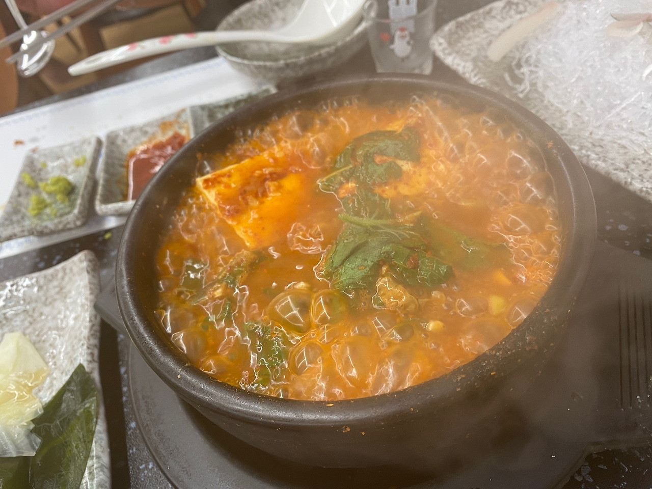 이 날 하루의 마무리는 매운탕이었다. 국물은 빨갛지만 일반적인 횟집의 매운탕이나 서더리탕보다는 걸쭉하고 진한 느낌의 매운탕. 근사한 한상을 5만 원에 즐겼으니, 가성비로도 마음에 드는구나.