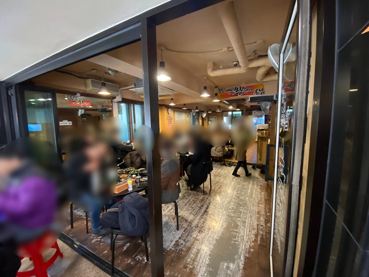 살짝 들여다본 본관의 내부. 생각보다 테이블 회전은 빠르지 않은 편. 필자가 느끼기에 대부분 느긋하게 순대국밥을 즐기는 느낌이었다.