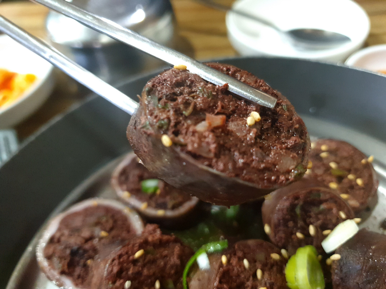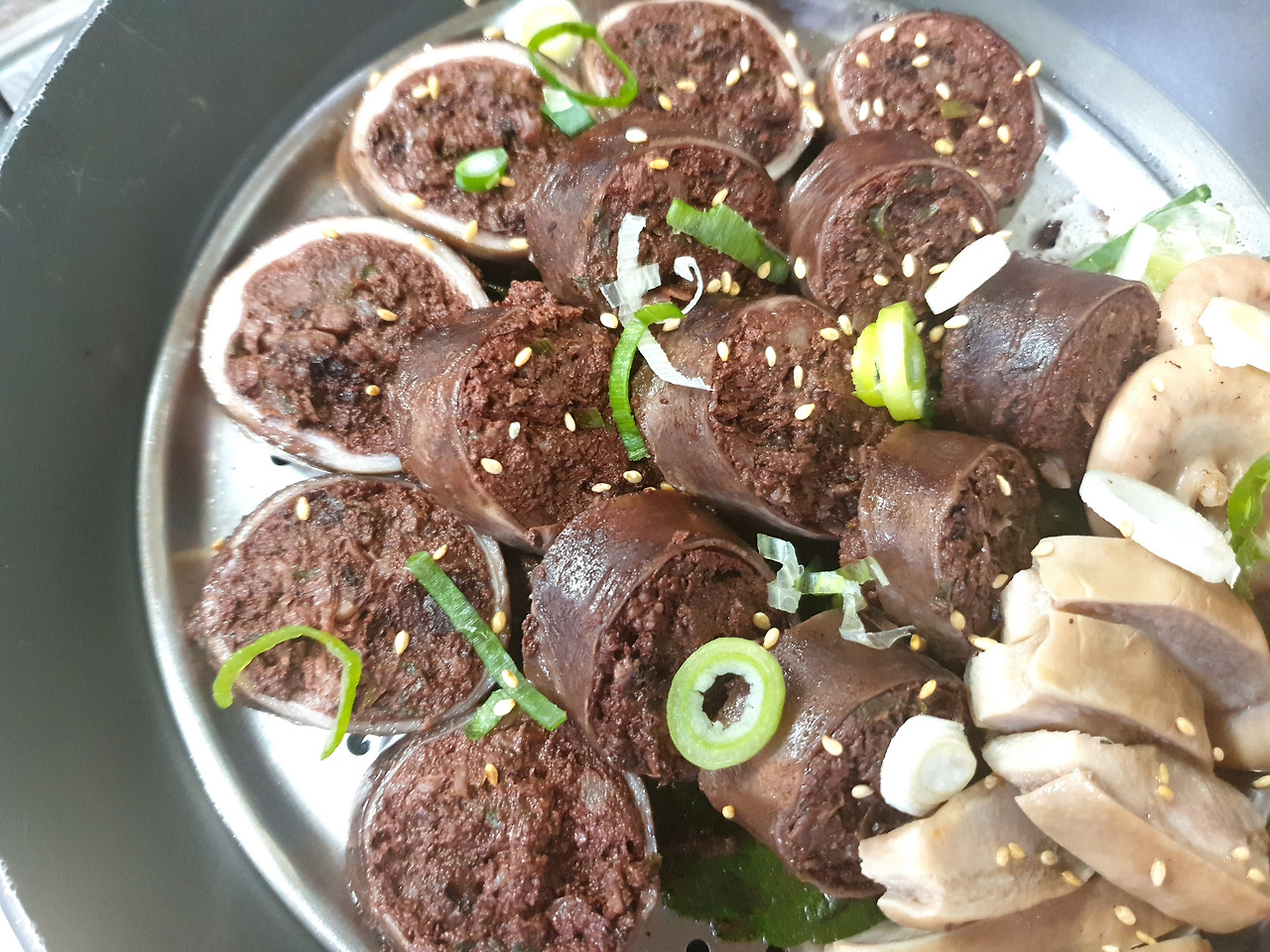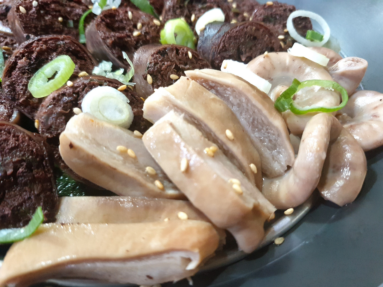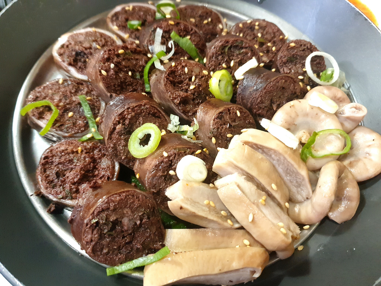 어린 시절 새소망학원의 원장님이 먹여준 피순대 한 알이 생각나고, 천안 어딘가의 지역장에서 먹었던 막창순대가 떠오른다. 익숙하면서도 흔하지 않은 비주얼이 먹기도 전에 필자의 향수를 자극하는구나. 서울에서 만나 그런 듯하다.