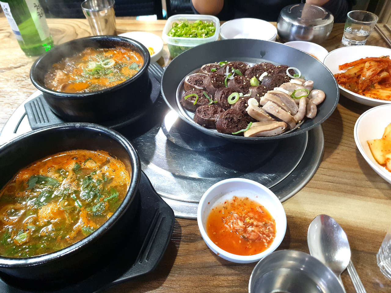 본격적으로 시식에 들어가는데. 오오, 좋다. 씹자마자 기분 좋은 노릿한 특유의 맛이 입안에 퍼진다. 서울에서 맛을 보니 감동이 더욱 더해진다. 순댓국도 칼칼하면서 은은하게 퍼지는 깻잎 향. 역시 머릿고기가 많이 들어간 것보다 부담이 덜한 깔끔한 맛이다. 피순대와 오소리 위주로 구성된 순댓국은 뻑뻑하게 채워진 피순대의 넘김을 도와준다.