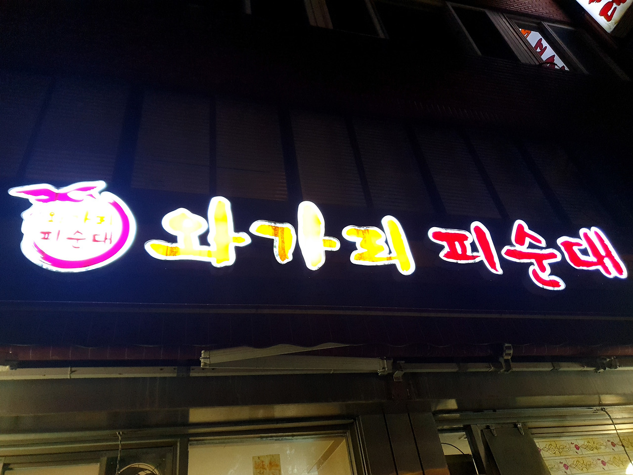가게 앞에 도착해 외관을 살펴보자. 뭔가 '와가리'와 '피순대'라는 단어. 원래 친한 단어인 것처럼 입에 착착 감긴다.