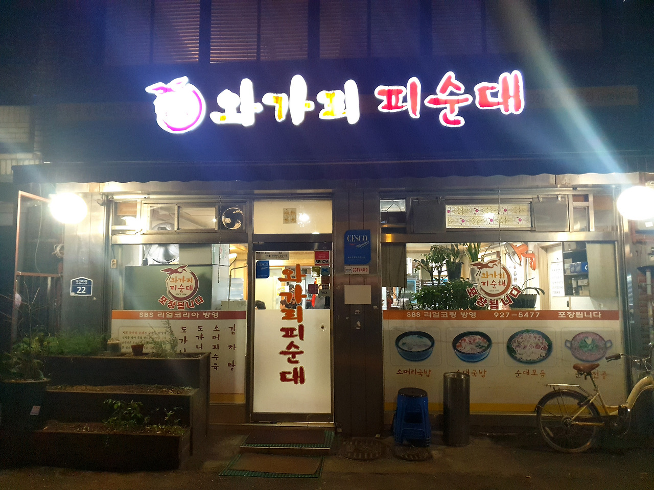 요새 네이버 지도 앱을 보면 그렇게 재미나다. 이동 예정인 곳마다 확대해 주변의 식당을 클릭해 보는 재미를 느끼곤 하는데, 그러던 중 우연히 찾게 된 피순대. 음? 피순대라니. 서울 생활을 하며, 잊고 산지 너무 오래된 건가? 낯설기까지 하다.