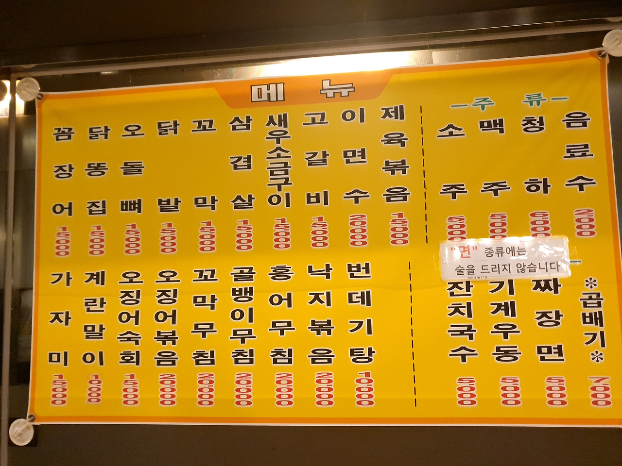면류만 시키고 술을 주구장창 마시는 이들이 있어서인지, 이젠 '면 종류에는 술을 드리지 않는다.' 는 문구도 붙어있다.