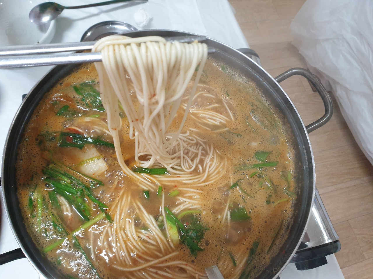 끓이면 끓일수록 걸쭉해진과 함께 풀어져가는 소면을 쉼 없이 먹을 수밖에 없게 되는데.