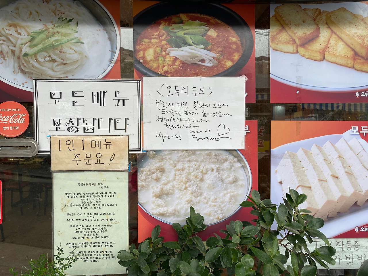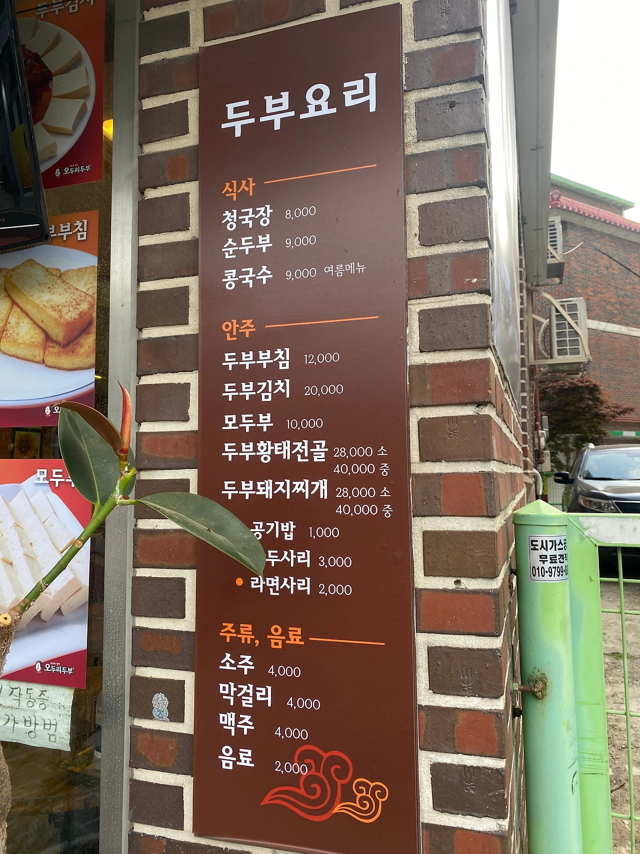 외부에 붙은 메뉴판도 한 번 슥 확인을 해주는데. 온통 두부로구나. 뚝배기나 그릇에 나올 식사류, 각 잡힌 두부들과 거나한 찌개들로 보이는 안주류로 구성. 마음에 든다. 들어가 보자.