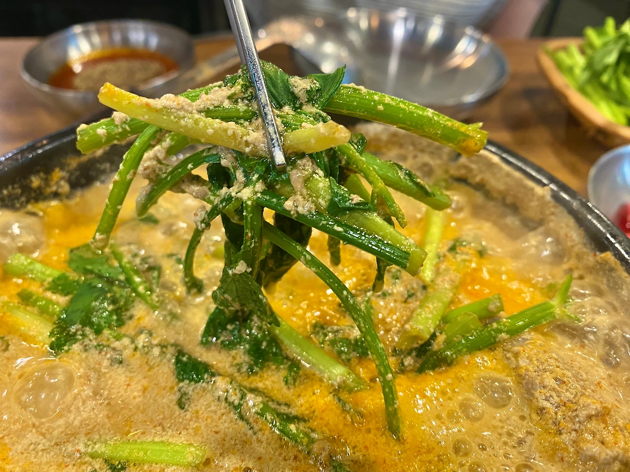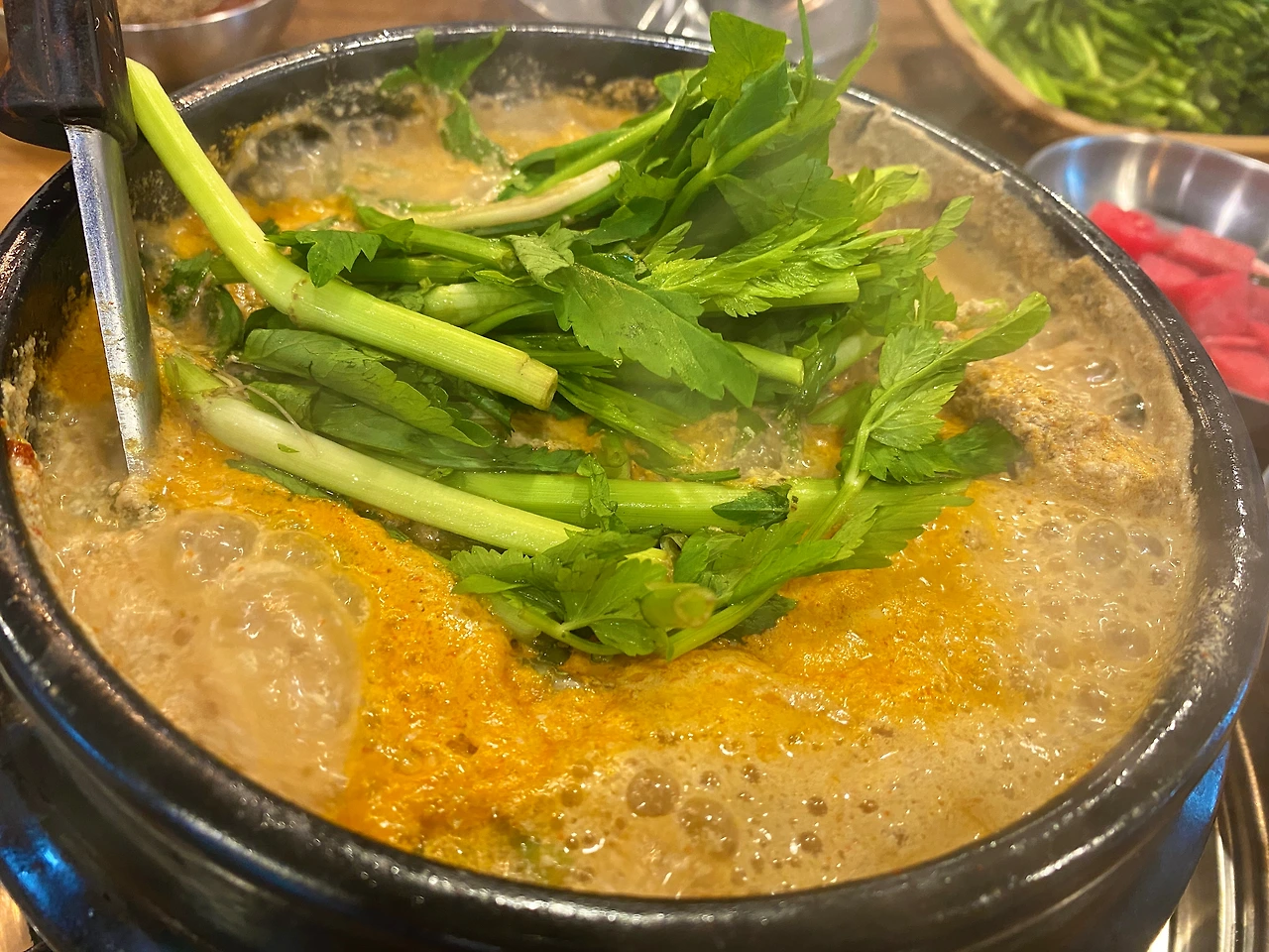 정말 좋다. (물론 필자의 입맛 기준이지만) 요새 팟 하는 맛집을 만나는 일이 적었는데, 최근 만났던 집들 중엔 단연 최고. 들깨가 지배적이라곤 하나, 저 콩비지 같은 국물 빛깔로 대충 예측한 맛이긴 한데. 이거 참 부담스럽지 않게 좋구나.