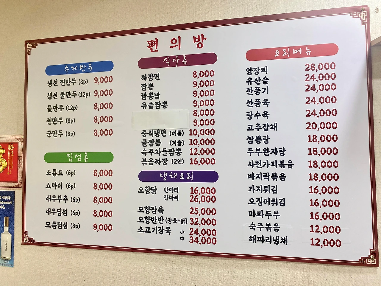 더불어 무엇보다 '편의방'의 매력이라면 가성비일 것이다. 유명세, 양 대비 저렴한 편이라 생각된다. 보이는 8개의 만두가 8,000원. 예나 지금이나 가성비로는 손에 꼽는 중식당인데. 식사나 만두류는 2인이 방문해도 2만 원 안으로 해결 가능한 곳이니, 이 부분도 참고하면 좋겠다.