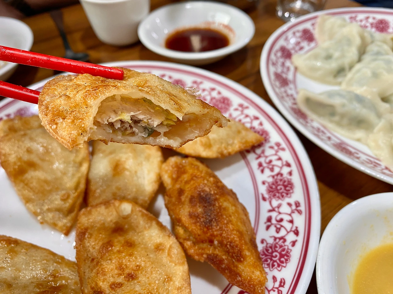 오래간만에 만나서인지 위가 평소 대비 더 많은 양을 소화할 느낌이더라. 금세 사라질 느낌이 들어 군만두도 추가 소환. 마찬가지로 맛이 좋다. 먹어 본 군만두 중 손에 꼽는 군만두인데. 속도 속이지만 저 만두 피에 집중하게 된다. 겨우 만두피가? 할 수 있으나, 납작한 떡을 빠삭하게 구워낸 듯한 쫄깃함. 피를 씹는 재미가 있는 군만두다.