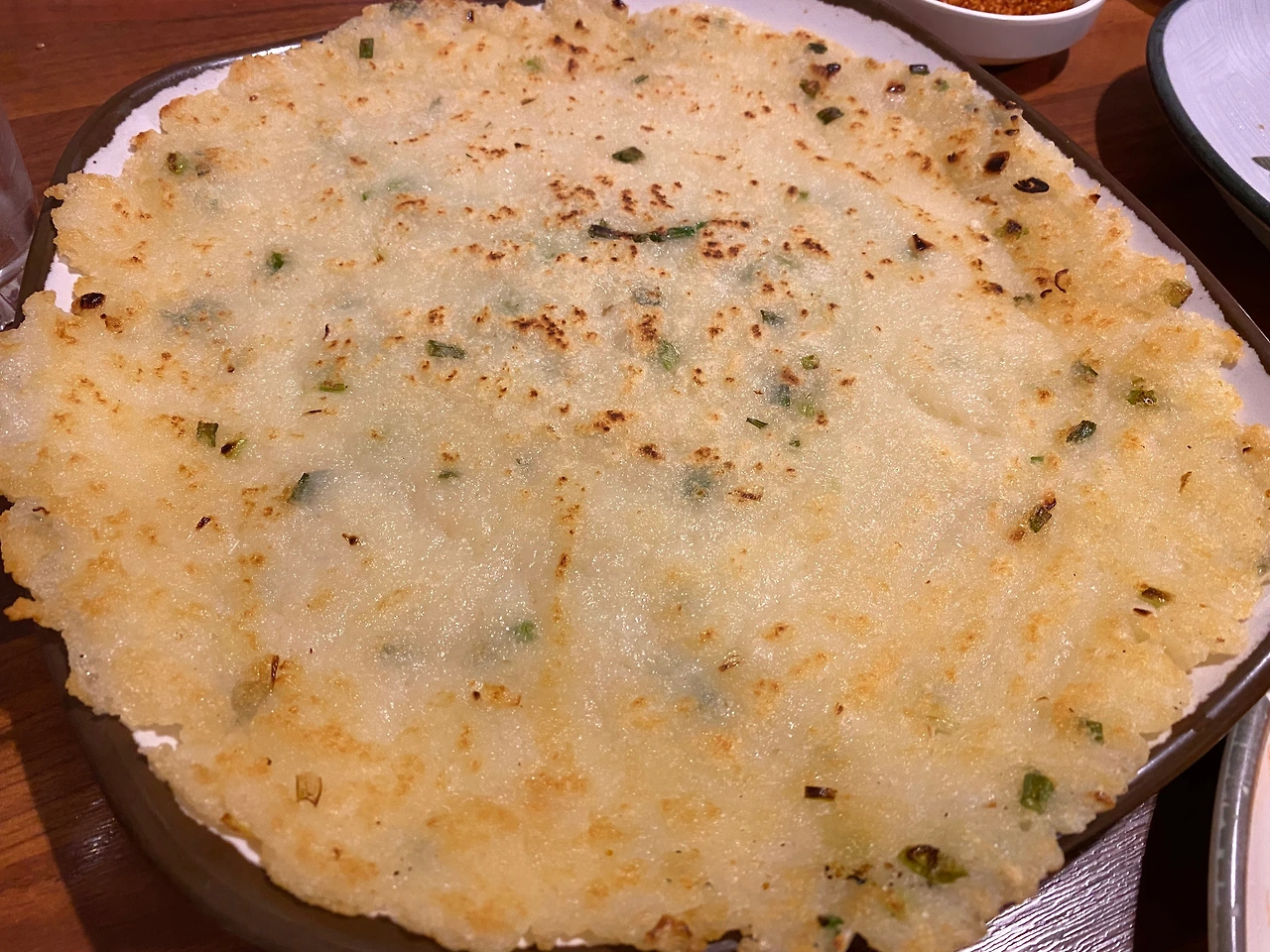 꽤나 늦게 도착한 감자전. 직접 가는 공정이 있는 것인지 모르겠으나 굉장히 부드럽다. 부드럽게 녹은 떡을 먹는 기분이 들기도.
