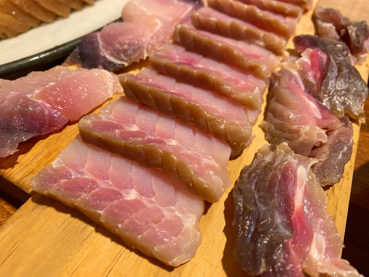 야심한 밤의 회동은 막 지금부터 시작이었으니. 삼합 소짜와 감자전으로 시작한 필자다. 본래 친구들과 만나는 자리에선 음식은 거들 뿐인 정도인데, (글을 염두에 두지 않고 편안한 마음으로 식당을 즐길 수 있기도 해서) 오늘은 홍어이니 존재감이 참으로 세다.