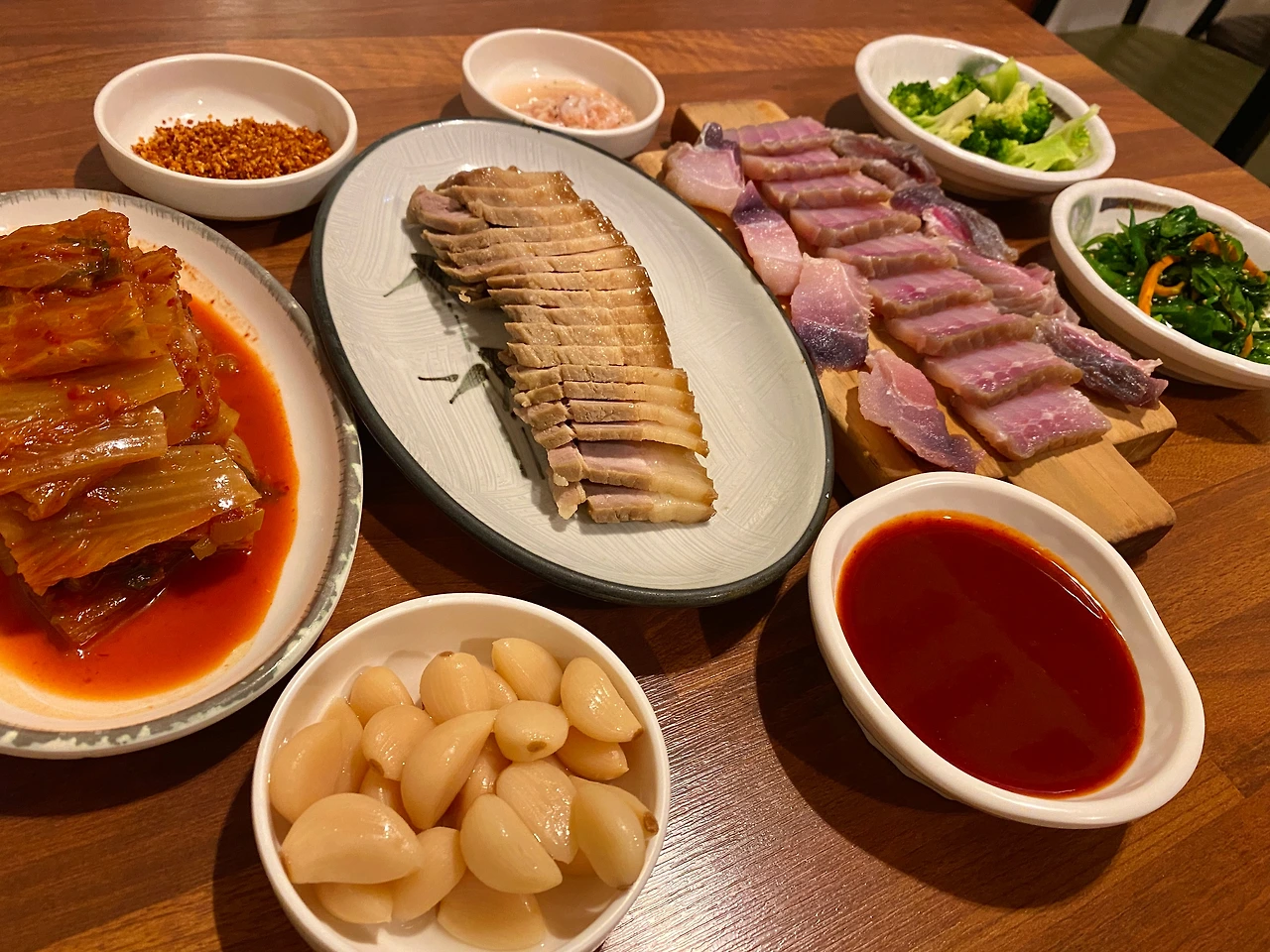 그리고 금세 뚝딱 삼합 한상도 완성. 아직 필자와는 유독 친해지기 힘든 홍어. 먼저 제대로 묵은 듯한 김치를 한 점 먹는데, 크. 생각하며 글을 쓰는 지금도 입에서 침이 고인다. 정말 제대로 묵은지. (익기만 푹 익은 게 아니라 정말 맛있게 묵었다.) 돼지고기 수육도 한 점을 해주는데, 참 좋더라. 조금 이상한 기분도 느낀 필자다. 김치가 정말 맛있어 그런 건지 모르겠으나, 다시 한 번 홍어와의 만남을 추진하고 싶은 감정이 무럭무럭 샘솟았으니 말이다.