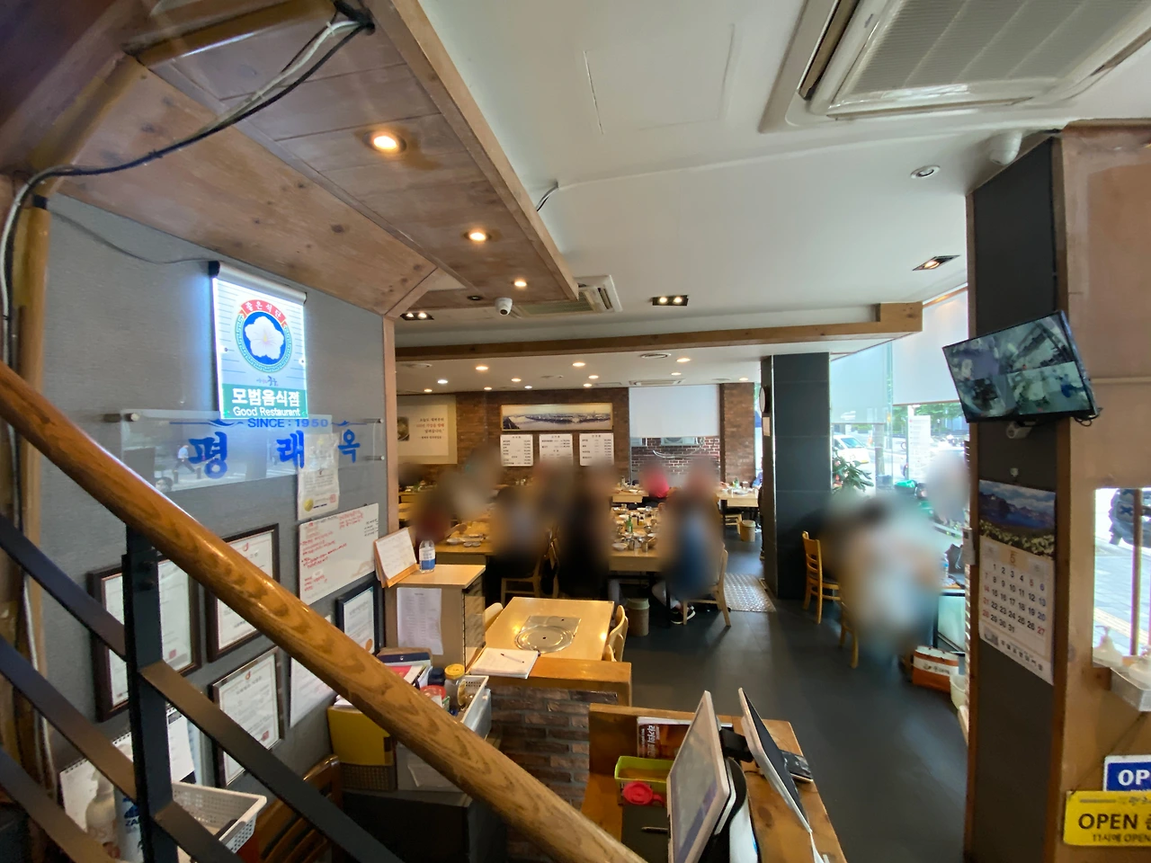 - 1, 2층의 홀로 이루어진 테이블식 구조 (창밖을 보는 혼밥 전용 카운터석도 구비)