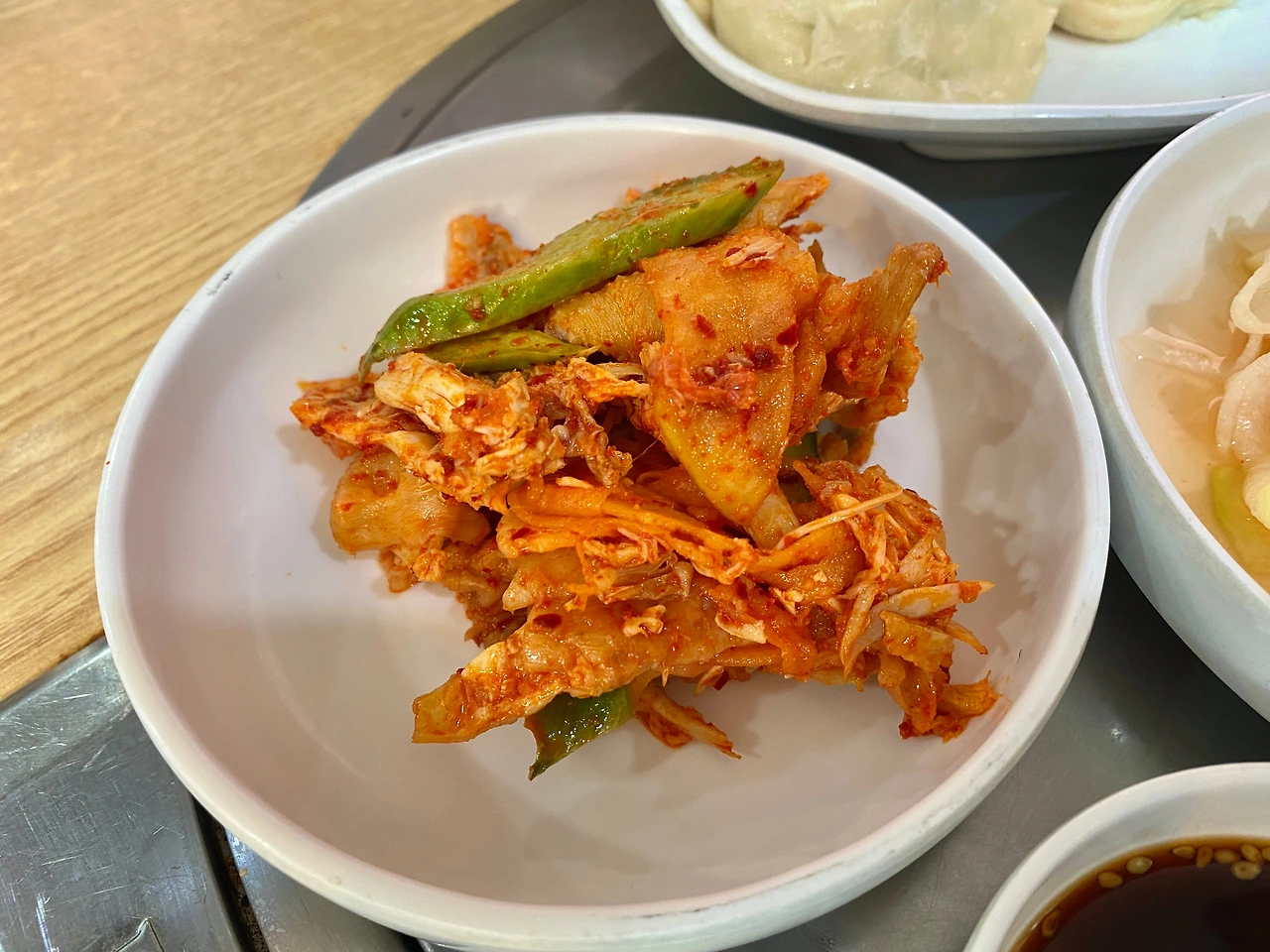 다만, 첫인상이 너무 강렬했어서인지 필자에겐 아쉬움도 크게 남았던 집이기도 한데. 먼저 뭐랄까 구성이 굉장히 무거운 느낌이다. 기본 찬으로 등장하는 닭무침은 어쩔 수 없이 뻑뻑한 감이 있고, 굵은 편의 면발, 더해 굵은 만두피까지. 식사를 어느 정도 마치니 버거운 느낌도 들더라. 독특한 3가지 중 어느 하나는 힘이 좀 빠졌으면 하는 바람.