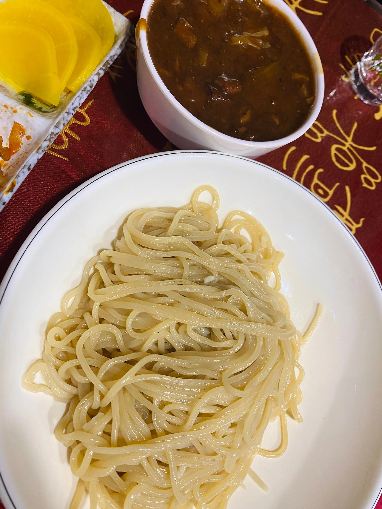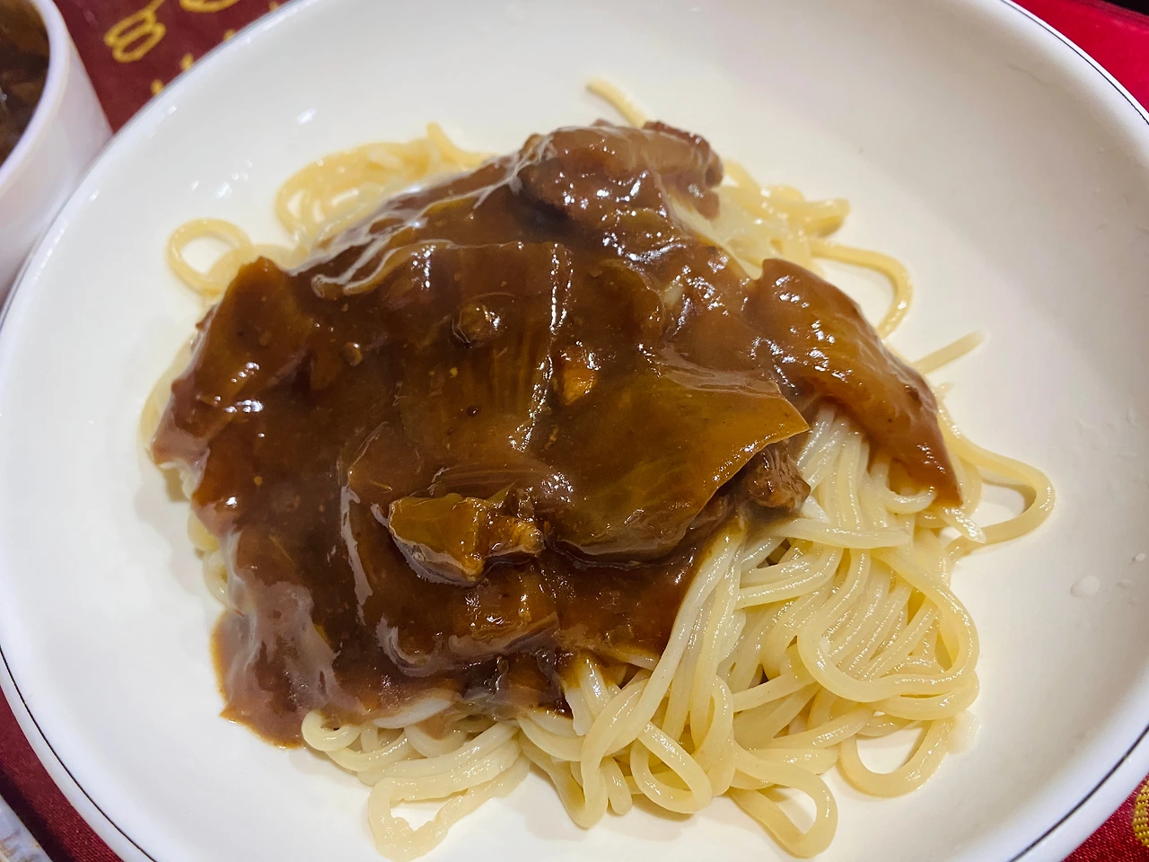 향으로 느끼나 시각으로 보나 된장을 기반으로 한 짜장이란 것에 고개가 절로 끄덕여진다. 다소 생소한 짜장의 향. 면도 생각보다 길쭉한 것이 독특하다.
