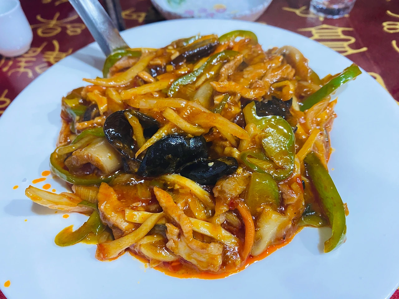 그리고 등장한 위샹러우쓰, 경장육슬과 마찬가지로 잘게 썬 돼지고기 베이스인데, 다른 점이라면 볶음에 가까운 요리다. 새콤달콤 돼지고기 야채볶음이랄까? 자차이에서 신맛이 상당했는데, 마찬가지로 느끼기에 이곳의 어향육슬도 신맛이 상당히 지배적이다. 끈적끈적한 것이 높은 도수의 고량주와는 찰떡궁합이지만. 아무래도 신맛을 즐기지 않는 연인으로 인해 긴급 보완책이 필요했으니.