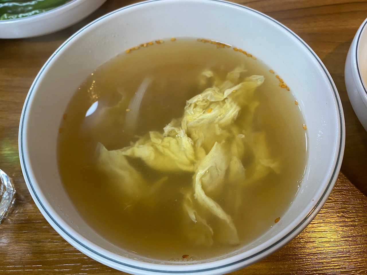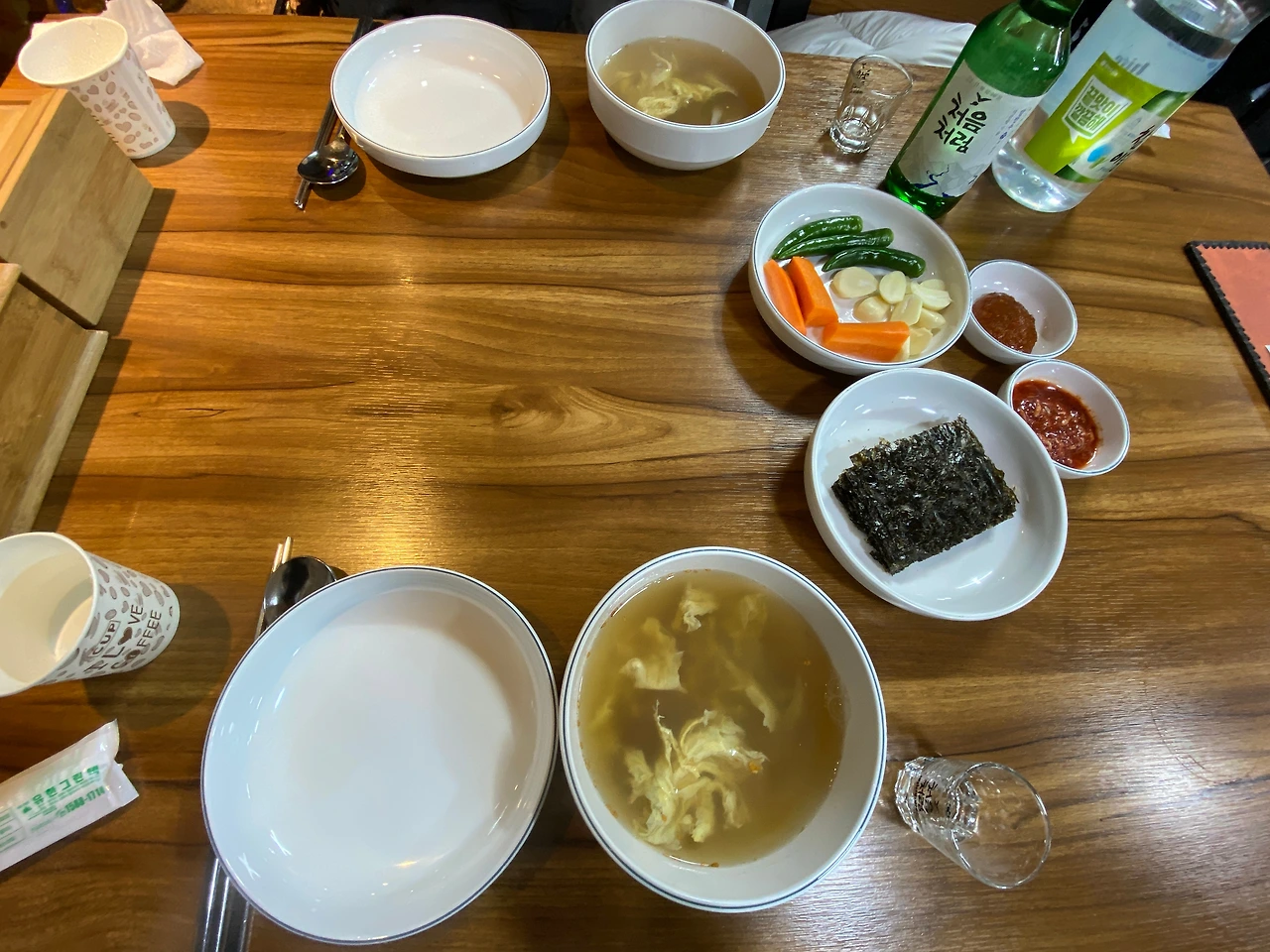 함께 나온 국물. 국물을 담는 일만 전담하는 직원분이 계실 정도. 크, 좋다. 칼칼한 멸치 베이스의 시원한 맛. 굴보쌈만 접하기에 뻑뻑할 수 있는 부분을 이 시원한 국물이 해소시켜준다. 풀어진 계란 조금이 대부분인 칼국수 베이스의 한 그릇 국물이나, 굉장히 귀중하다.