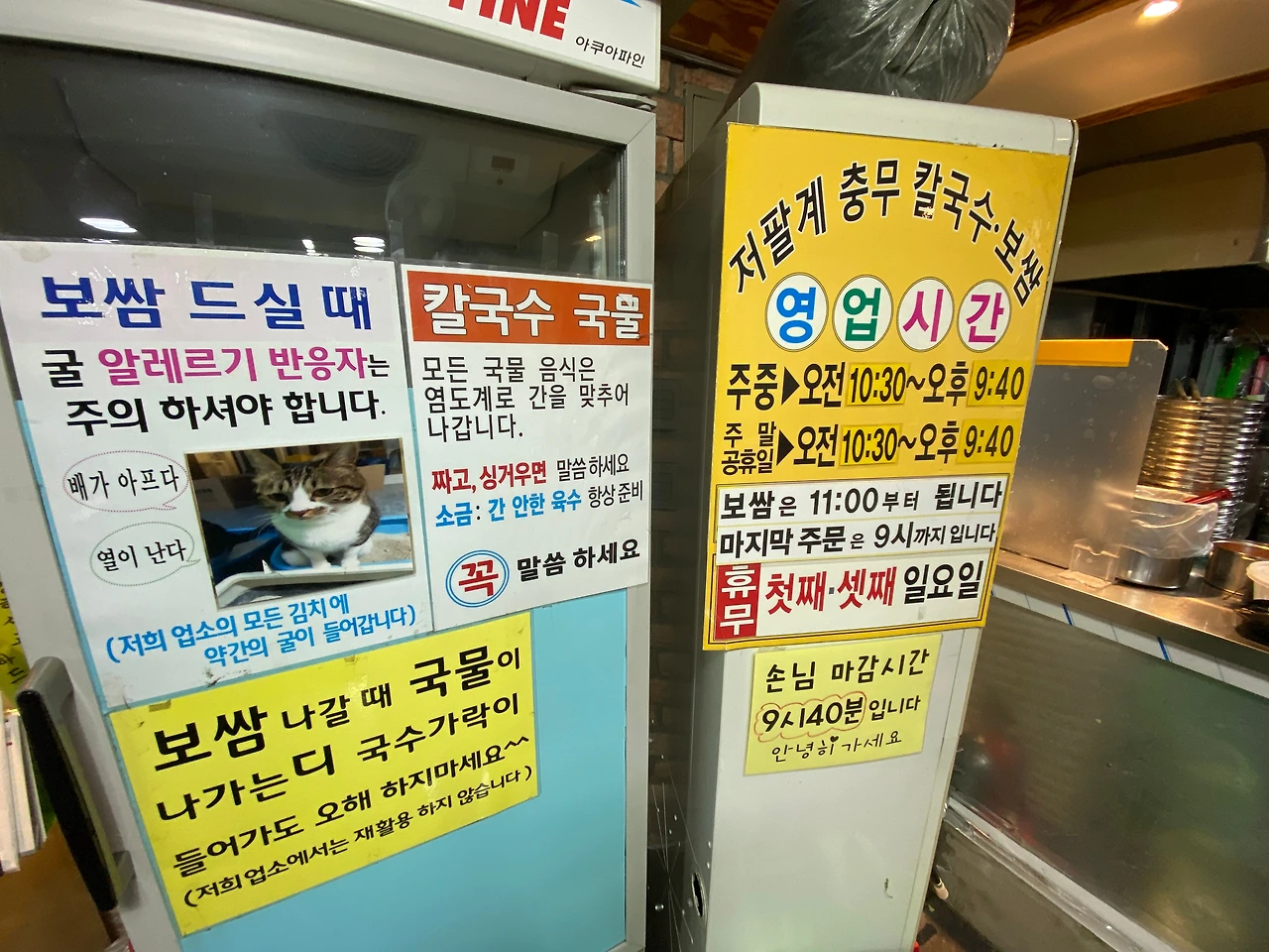 직접 방문하면 좋은 점이다. 네이버지도상의 정보와는 살짝 다르고, 추가 정보도 알 수 있다. 21:40분에 종료, 마지막 주문은 21:00 다. 먹기행을 하다 보면 간혹 네이버지도상의 정보를 추가하거나 수정하는 일을 어려워하는 사장님들이 더러 계시더라.