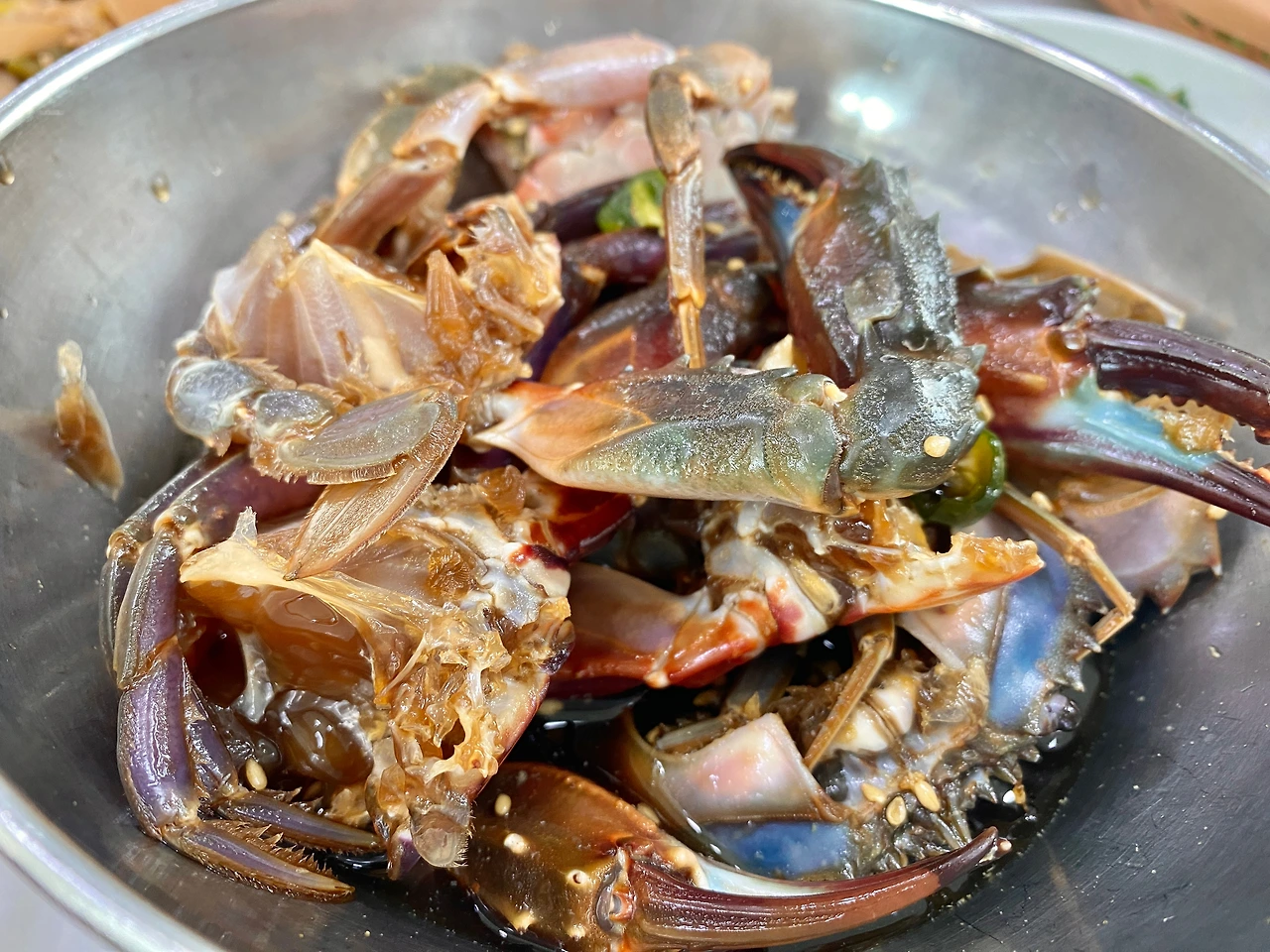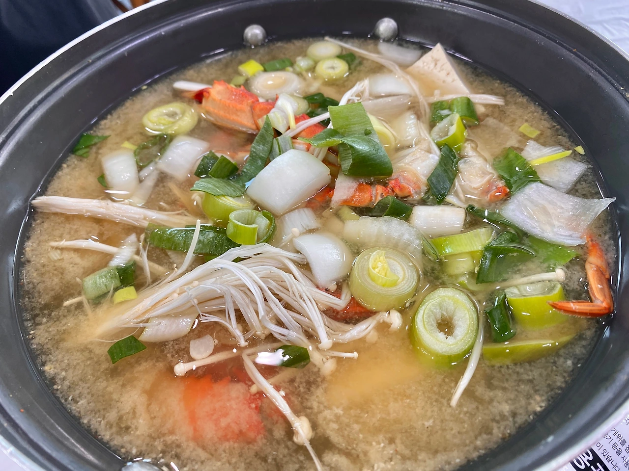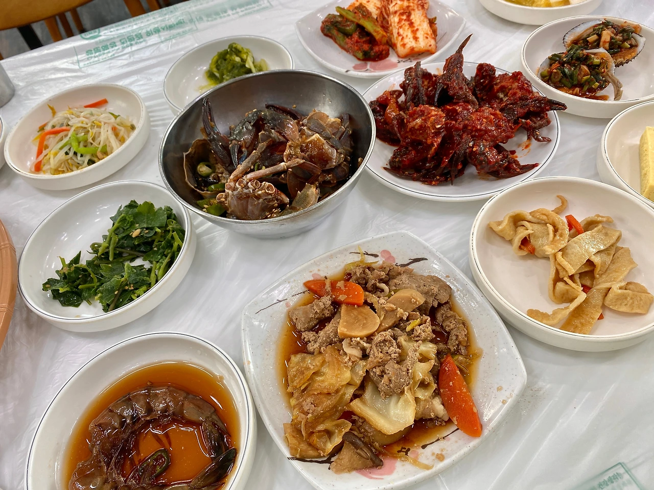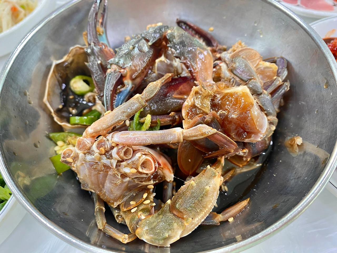 꽃게 된장국을 마지막으로 기본 찬들 소개는 마친다. (게가 들어가 단맛의 비중이 큰 된장국.) 참 여수의 식당은 반찬 소개로만 분량을 넘기는 기분이구나. 이제 본격적으로 돌게장을 만나볼 시간.