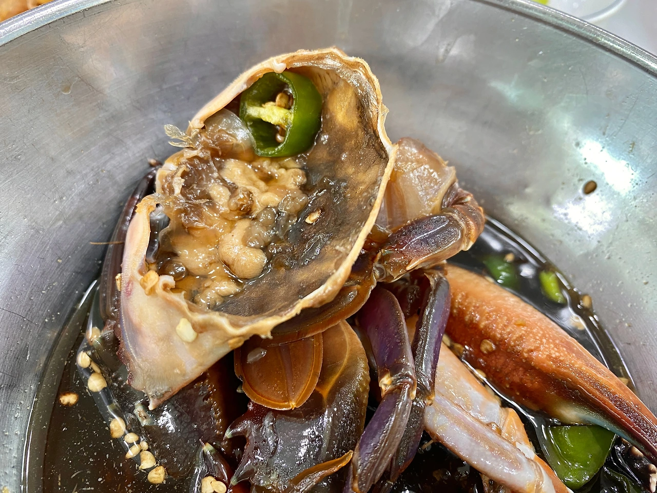 육안으로 보기에도 단단한 게장. 역시 이래야 돌게지. 아무래도 꽃게에 비해 단단한 감. 또 이게 살은 그렇게 많지는 않아 몸통 외에는 선뜻 먹기 어려워 보일 수 있는데.