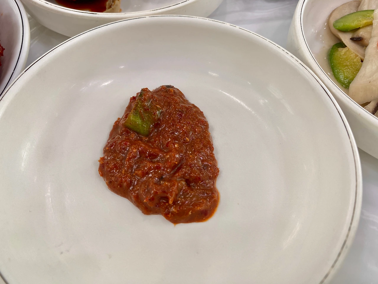 - 다만 메인이 게장인 탓에 많은 찬들에 손이 가진 않았는데, 그래도 유독 빛났던 것이라면 갈치속젓. 참 인상적이었다.
