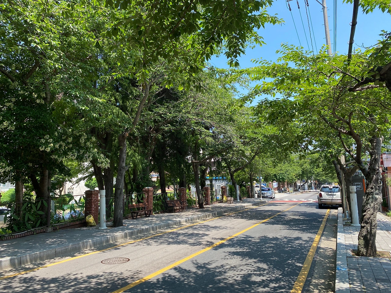 주차를 마친 뒤, '옛날밥집'을 향해 걸어가는 길. 미륵산 인근이라 그런지 모르겠지만 동네가 참 소소하니 정겹고 예쁘더라. 바로 산 너머 '달아공원'의 바다와 섬들의 풍경과는 확연히 다른 느낌. 여하튼 간 그렇게, 시간제한 없이 유료 주차 1,000원이라는 넉넉하고 기분 좋은 사전 정산을 마친 뒤, 바로 '옛날밥집'으로 향한 필자다.