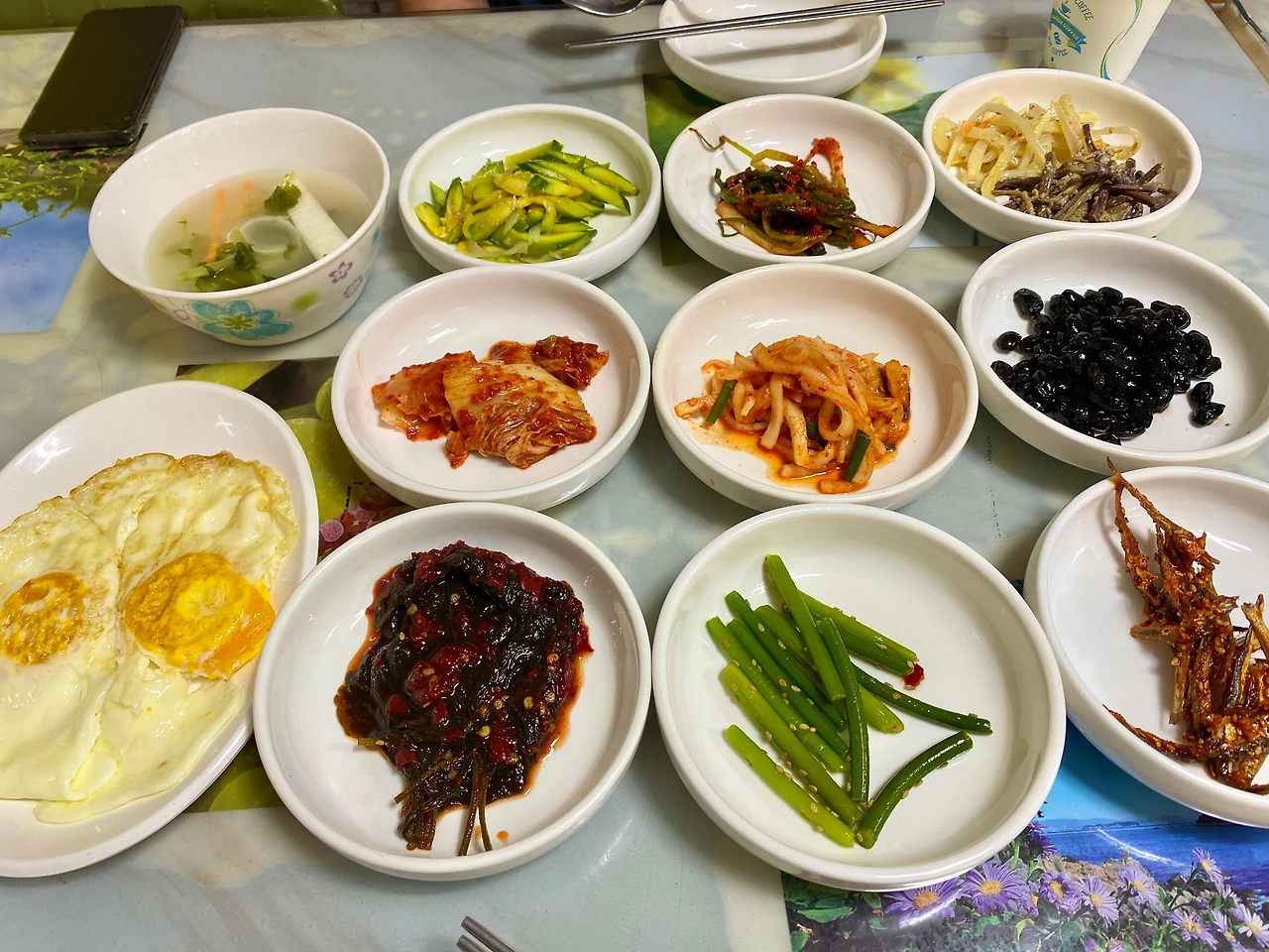 무려 11찬. 놀랄 노자다. 더욱이 놀랐던 건 모든 찬에서 할머니만의, 이 집만의 손맛이 느껴졌으니. 아, 이거 더 큰 공복에 왔어야 하는데, 하는 후회가 살짝 들더라. (당시 필자가 유심히 보기에 보통 9찬? 정도로 나오는 것 같은데, 멀리 타지에서 온 손님인 걸 직감하신 것인지 할머니가 고사리+도라지나물, 파김치는 특별 제공식으로 꺼내주신 듯하다.)