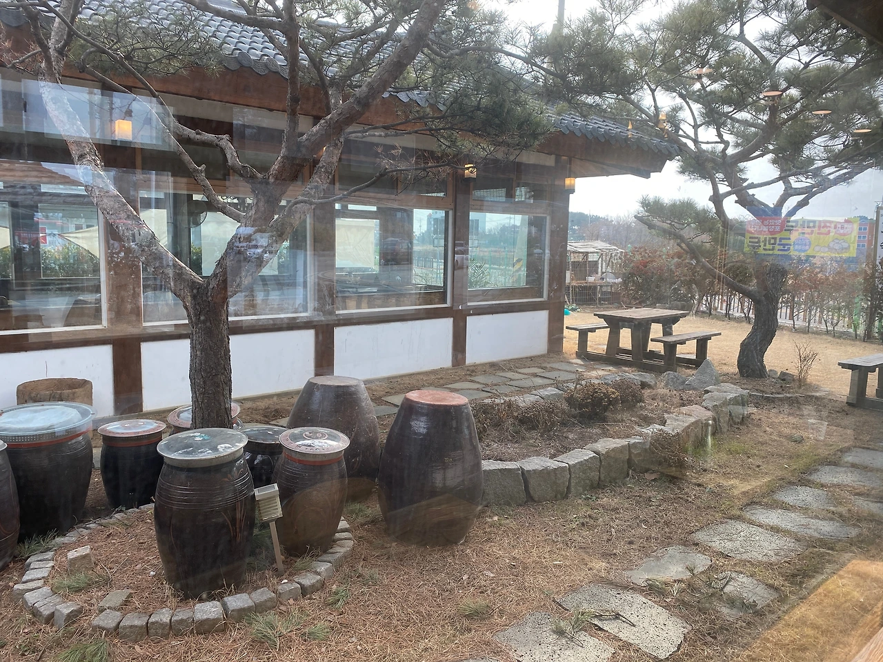 가운데 마당이 보이는 곳으로 착석해 앉았는데. 장독들도 여럿 보인다. 독특한 바지락쌈장을 다루는 집이니, 음. 전반적으로 음식도 손맛이 어우러지지 않았을까 기대해 본다.