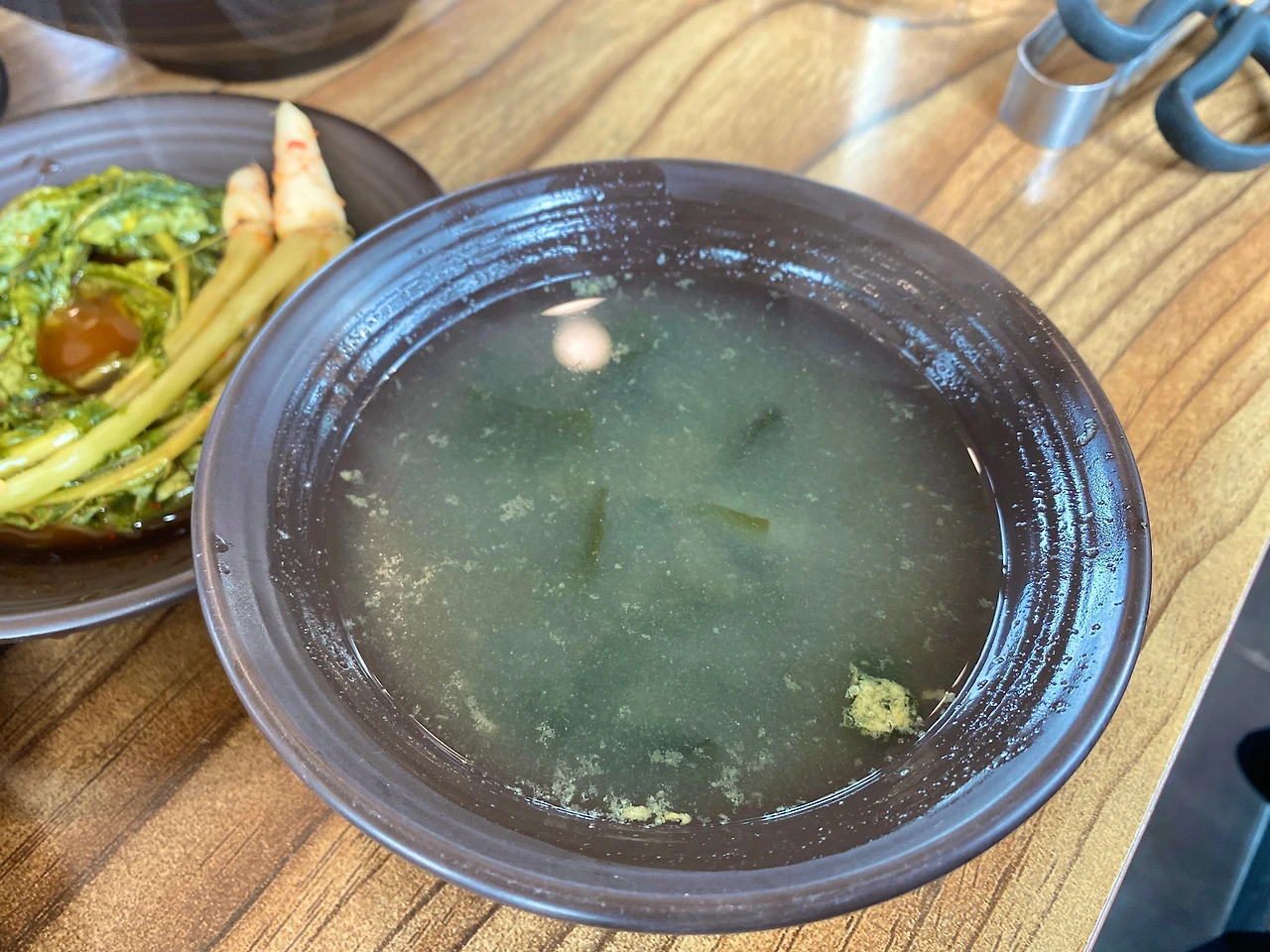 오호라. 미역국을 맛보니 단번에 이해가 가는구나. 익숙한 쌉싸름한 향, 흡사 올갱이해장국스런 내음이 나는데, 다슬기로 맛을 낸 미역국이다. 처음 접해보는데 필자 개인적으로는 굉장히 좋다. 새로운 발견이자, 좋은 접근이다. 국물만 우려낸 듯한데, 익숙한 충청도의 향이 코를 찔러 좋다.