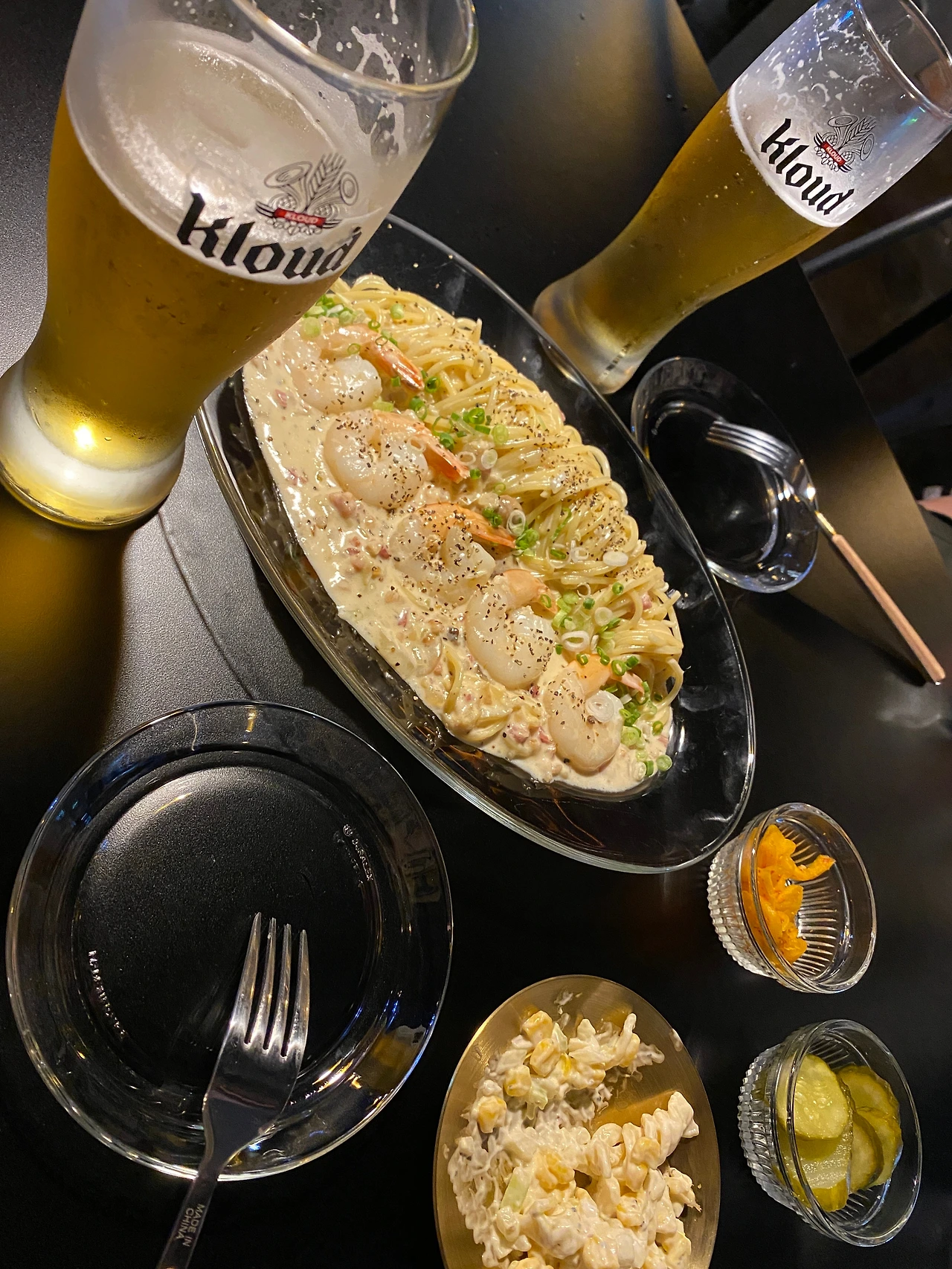 크림파스타와 생맥주가 하이파이브하는 소리가 들린다. 협공으로 치고 들어가 화가 난 위를 달래주자. 하는 화이팅이기도 하다.