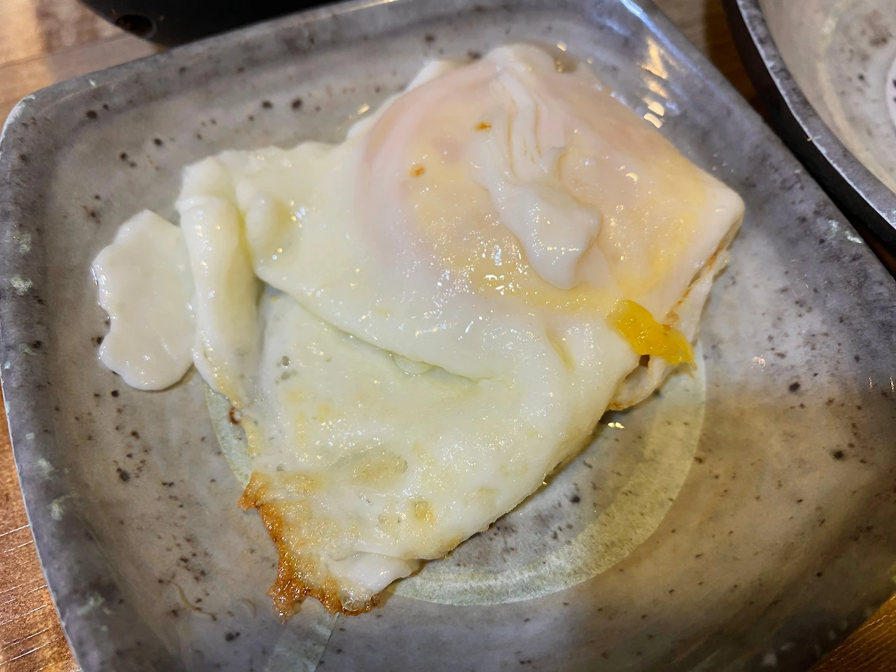 뼈전골 中짜에 더해 후라이도 한 알 주문했다.