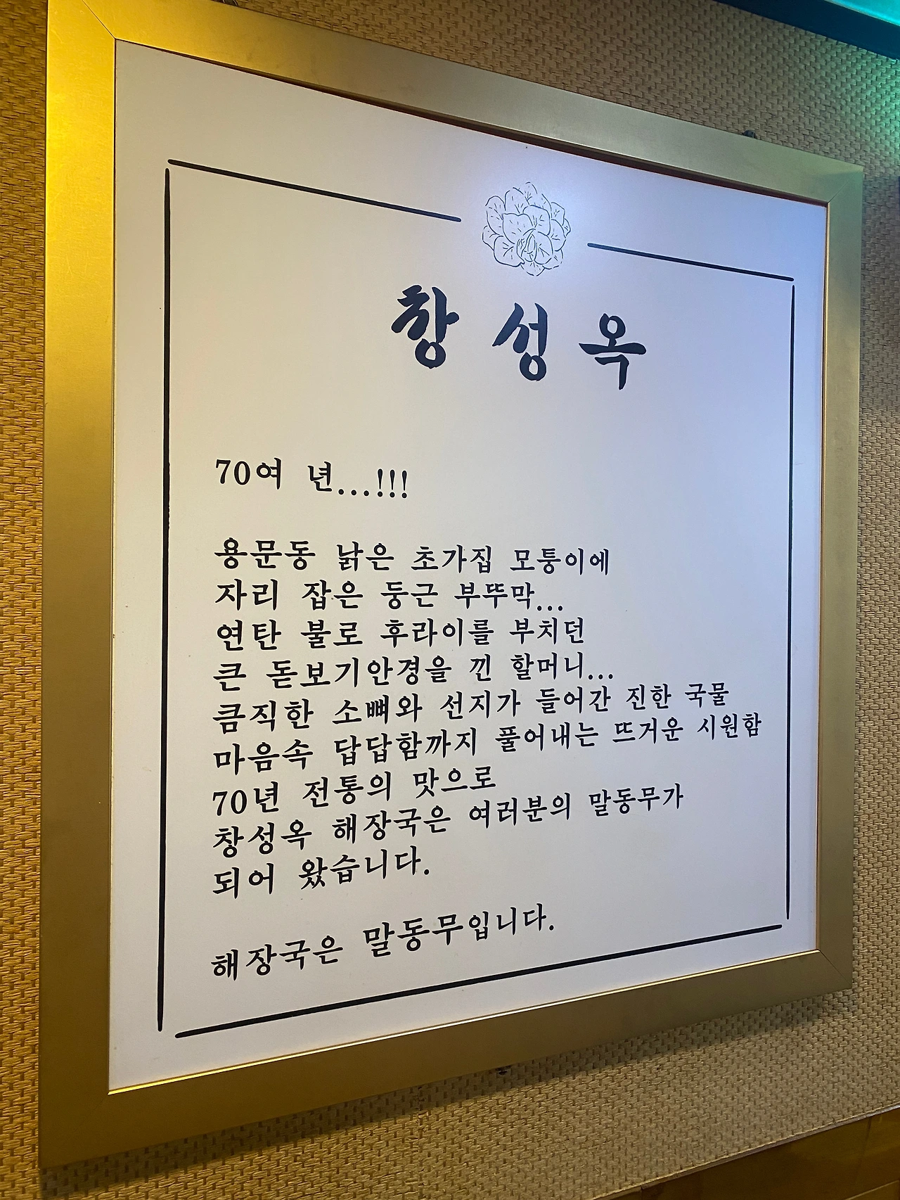 비주얼도 맛도 생소하지만 깊이 있는 만큼 진짜배기다. 필자에겐 다른 의미로 익숙한 용문동에 위치한 '창성옥'을 만나보도록 하자.