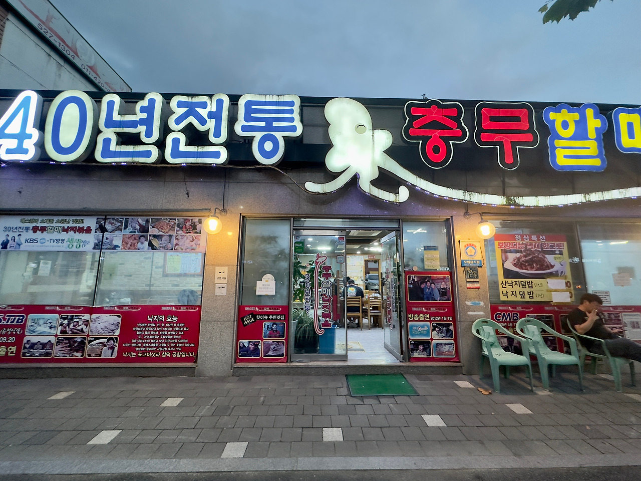 이전한지도 10년은 더 넘은 듯한데, 정말 큼직하게도 확장 이전한 '충무할매낙지볶음'의 모습. 아이폰의 확대샷에도 간판이 다 잡히질 않는다. 기술했다시피 예전의 위치를 중요한 순간에 가족들과 이따금 찾았었는데, 당시 방문도 부모님께 중한 말씀을 고할 자리였으니, 참. 인생의 굵직한 순간을 또 함께 하는구나.