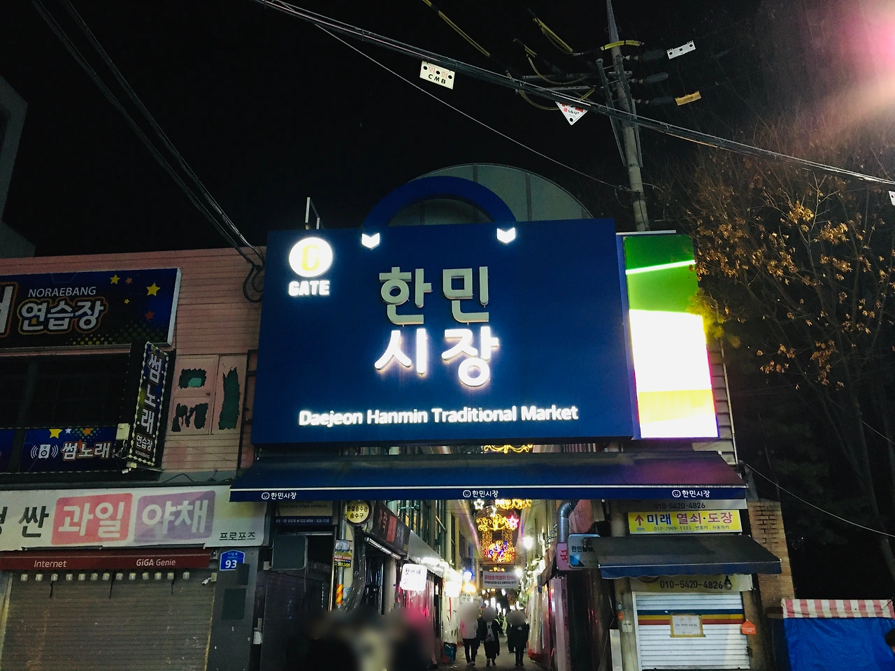 시간을 더 거슬러 올라가 30년도 더 전엔 완벽한 재래시장의 모습이었던 한민시장의 초입과 끝이었었다. 파라솔이 펼쳐져 있고 울퉁불퉁한 시장길이었는데, 어느새 지붕이 갖춰진 시장이 되었으니, 이런 때 세월이 흘렀음을 느끼는구나.