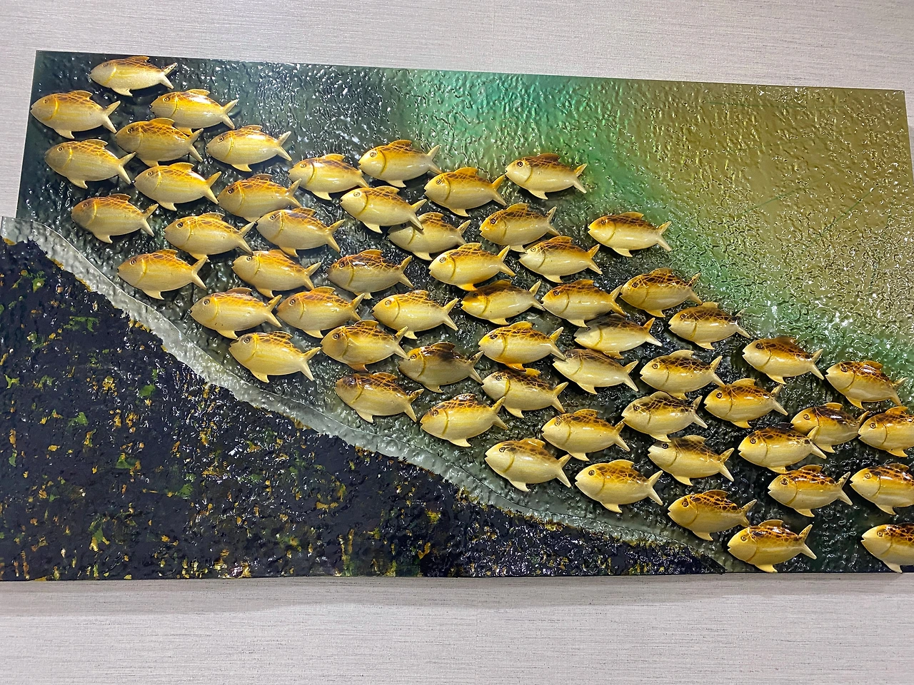 무슨 생선인지는 모르겠으나 액자를 보며 기다리는 필자다.
