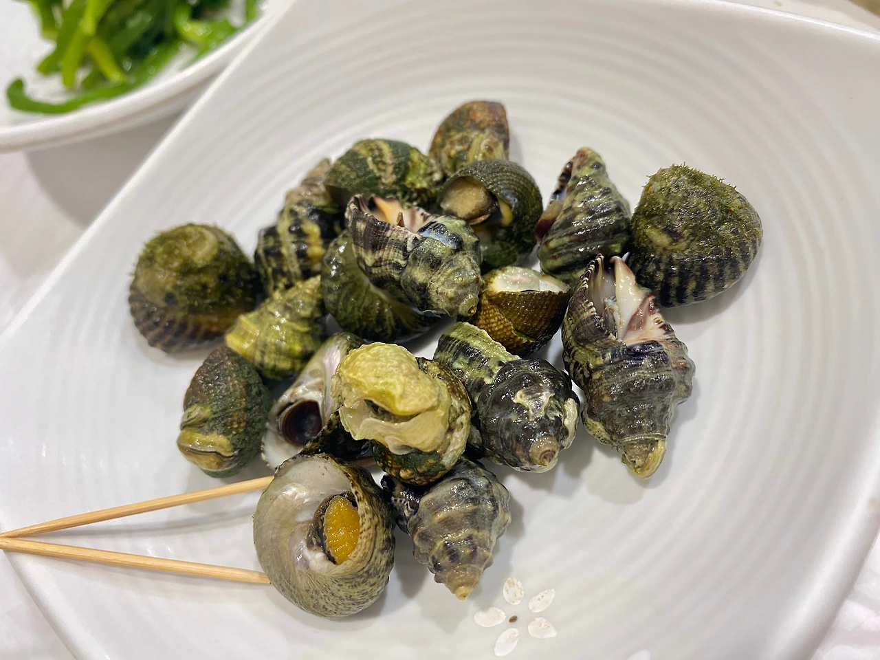 조금 기다리자 삶은 바닷고둥(보말)부터 시작해서.