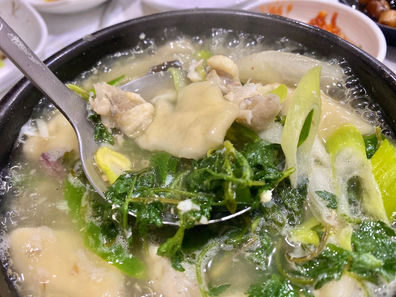 그렇게 여행 일정 한복판에서 여행스러운 향과 색이 물씬 밴 저녁. 술과 음식에 취해 시간을 보내고 있는데, 마무리로 국물도 나와줬다.