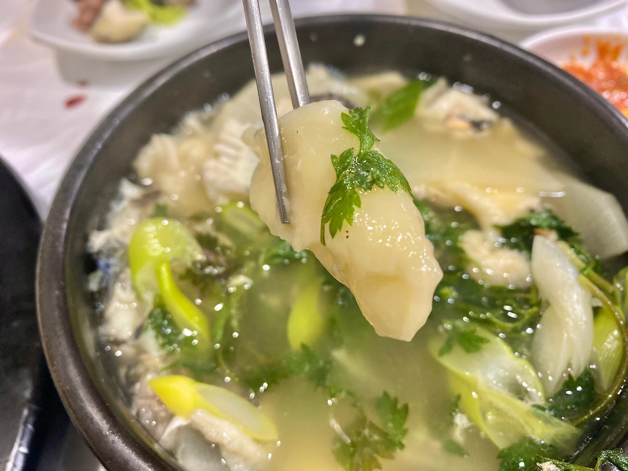 아 녀석. 그날 아침에 만났던 도다리쑥국이다. 좋구나. 뚝배기에 끓여져 나왔는데, 이번엔 손수제비까지 선봉장으로 띄워져 등장. 한껏 묵직해진 도다리쑥뚝배기 아닌가?