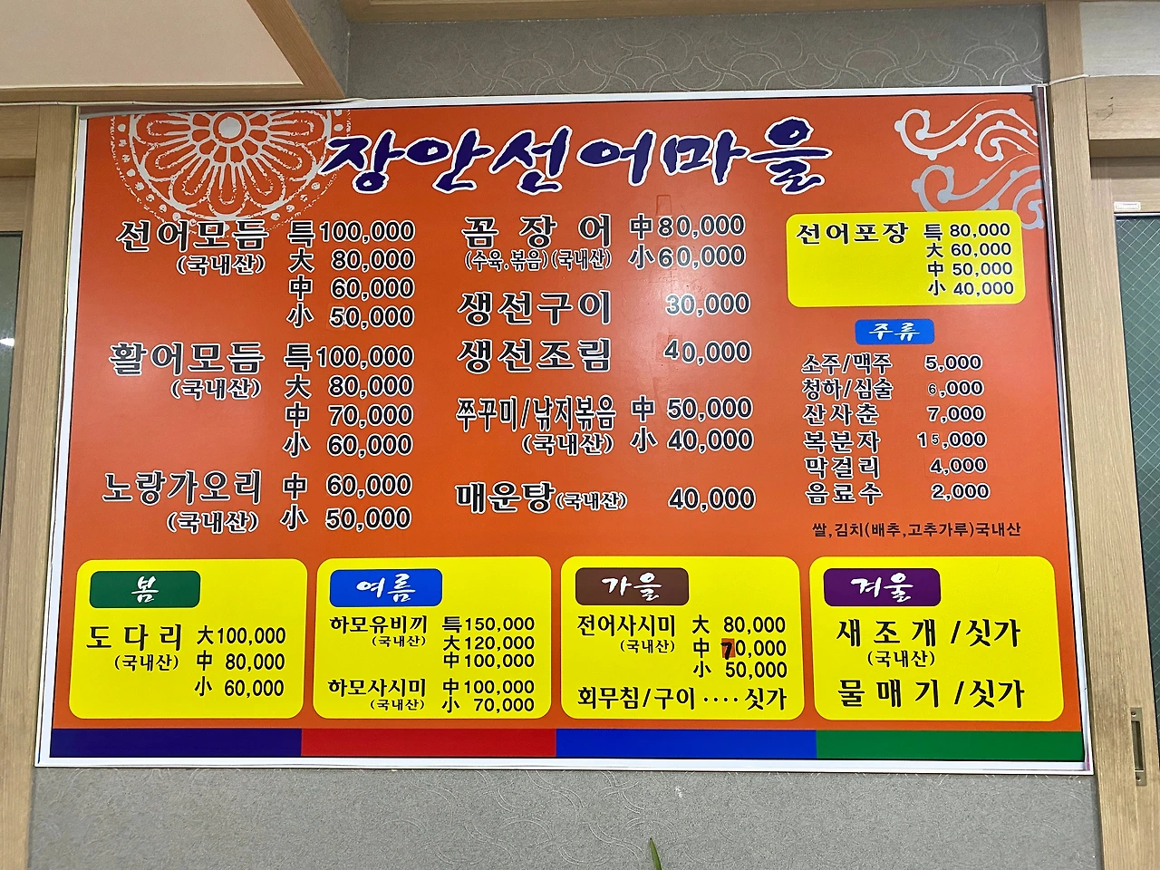 그렇게 자리를 잡아 앉았고, 먼저 메뉴판. 필자의 경우 사전 전화를 통해 문의하고 음식도 얘기를 나누었기에, 고민 없이 선어 모듬 小짜로 주문.