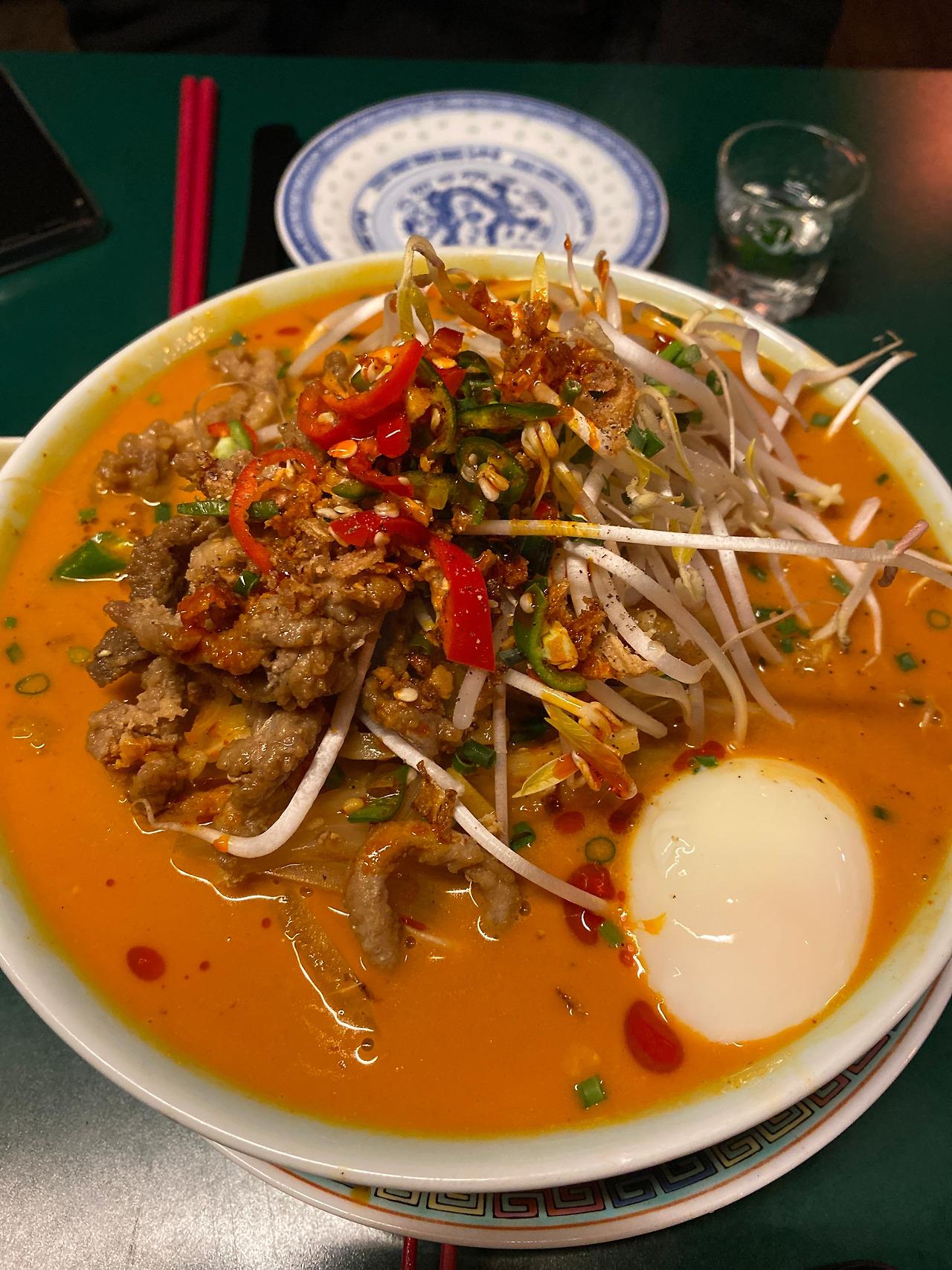탄탄면 먼저 등장. 산처럼 수북해 조금 놀랐다. 수란에 가까운 계란이 첨벙한 듯 들어있구나. 탄탄면. 들어간 장과 소스 비율에 따라 집마다 맛의 갭도 워낙 크고, 방식 또한 스펙트럼과 같이 굉장히 제각각인데, 이곳의 탄탄면은 국물 가득 스타일이다.