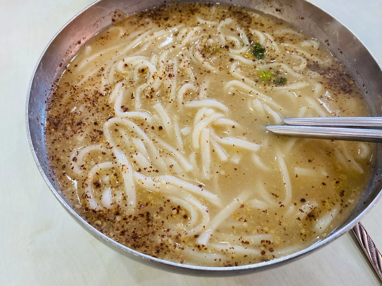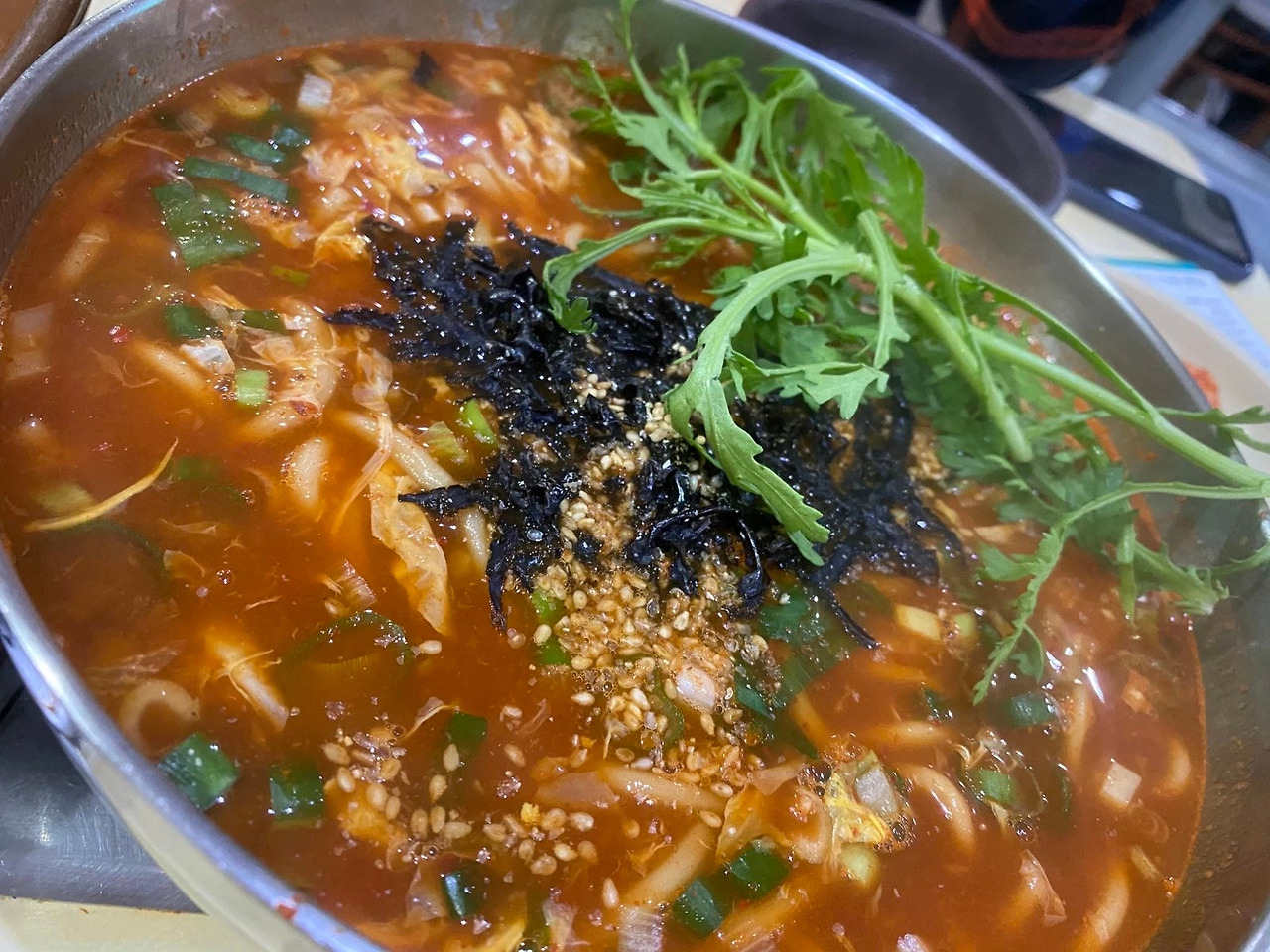 이 타이밍에 양념장을 가볍게 투척. 대전스러운 칼국수. 맑은이 주류를 이루고 얇은 우동면 스타일이 많은 서울의 칼국수보다 친숙한 면발.