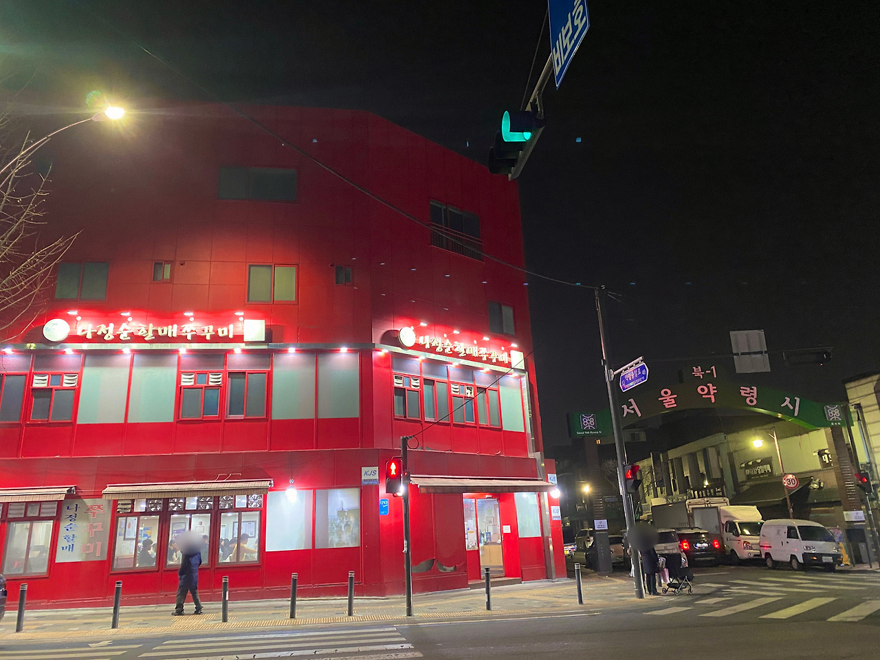 그렇게 약령시의 약재 시장을 뚫고 나오면 2호점을 만날 수가 있다. 자 저 빨간 쭈꾸미만큼이나 새빨간 외관의 가게로 들어가 보자.