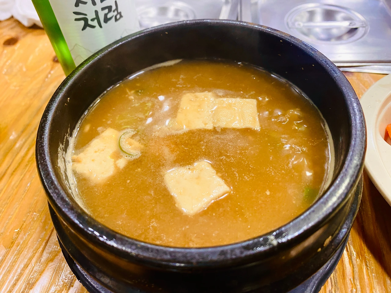 이후 볶음밥을 시키면 나오는 된장찌개도 등장. 집 된장에 청국장 살짝 섞인 듯한 느낌도 있는데 나쁘지 않다.