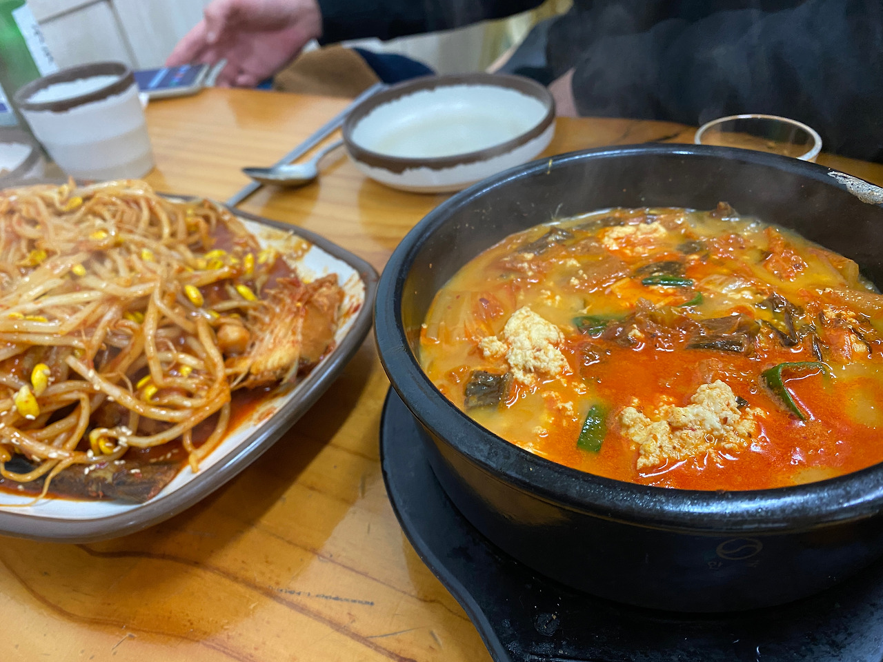 신김치와 조합이 아주 절묘하구나. 자칫 신김치로 뒤덮일 수도 있는 맛을 순두부의 콩물이 적절히 방어해주며 둘이 절묘한 대립각을 선보인다. 시큼 칼칼하면서도 구수한 맛이 적절한 줄다리기를 하는 느낌. 그래서인지 국물이 뽀얗고, 은은하게 구수한 맛이 도는게 일품!