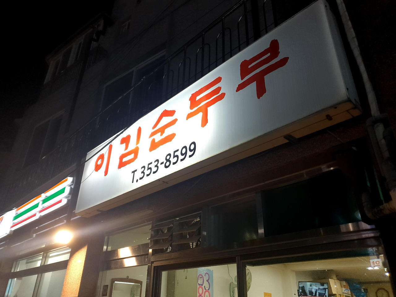 두부전문점이라니, 참으로 신비로운 가게다. 가게 외관으로 보이는 메뉴는 모두 두부. 메뉴판과 함께 가게의 간판도 습관처럼 살피는데 무슨 뜻일지도 궁금하구나. 이긴다는 건지, 사장님이 이씨와 김씨라던지, 괜히 그 뜻이 궁금해 진다.