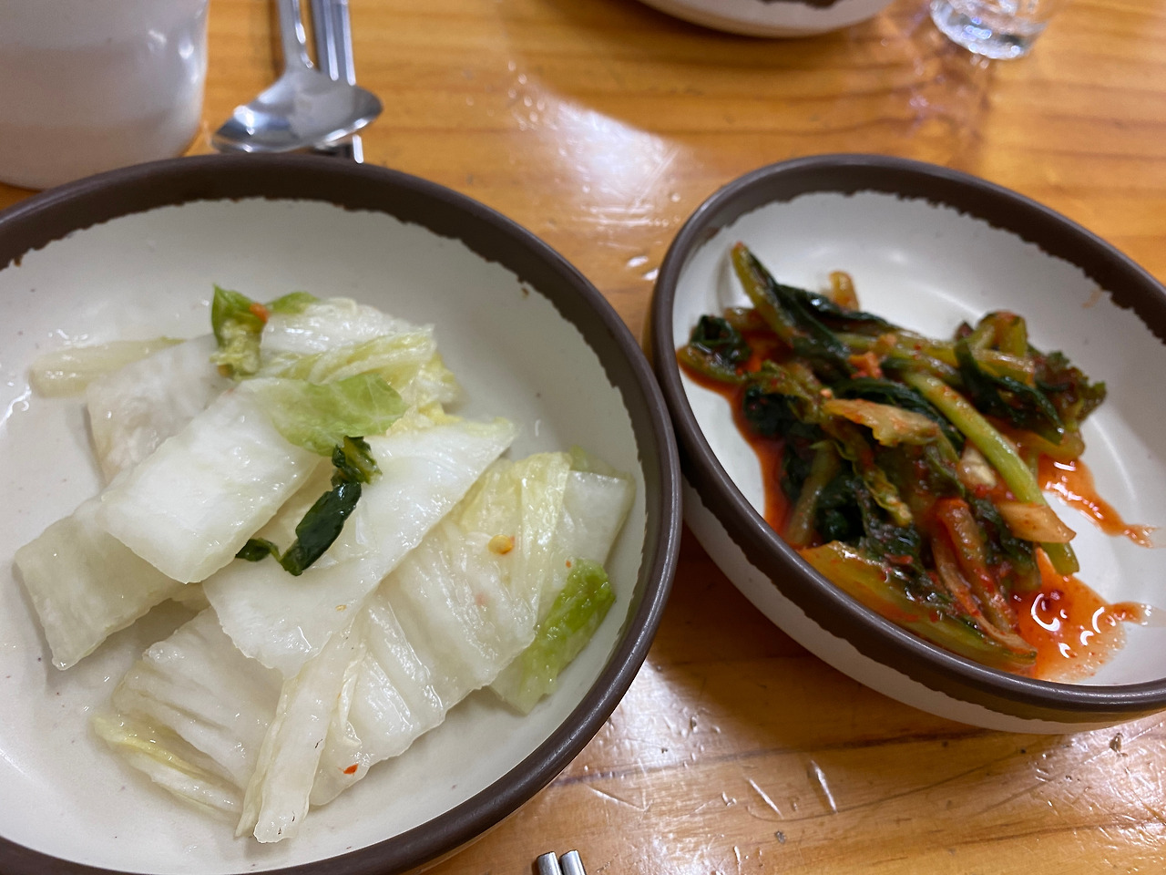 등장한 백김치와 열무김치가 기본 찬이다. 정말 희한했던 점이라면 가게에 착석하고 음식이 나오기까지 상당 시간이 걸렸던 것 같다. 체감으로는 30분 이상? 그런데, 테이블에 자리 잡은 모든 손님들이 익숙하게 그 시간을 기다리고 있다는 점이었다.