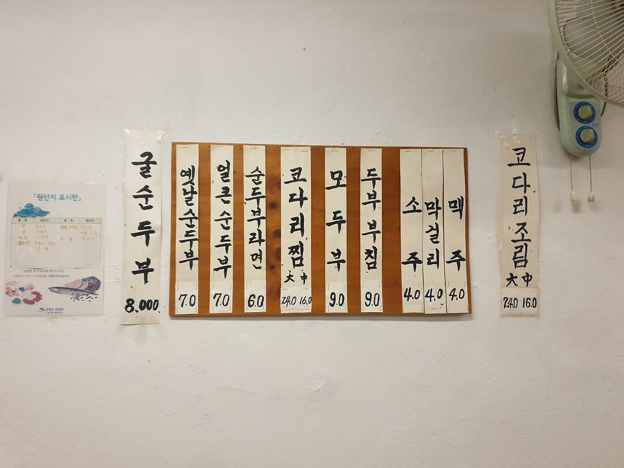 확실한 건 평범한 맛은 아닐 거라는 확신을 외관을 통해 느낄 수가 있었는데. 메뉴판을 통해서도 느낄 수가 있다. 왠지 모르게 장인 정신이 느껴진다고나 할까? 굴순두부와 코다리조림은 메뉴판의 쓰여진 글씨가 살짝 다른 것이 이후 등판한 듯한 모양이다. 굴순두부는 쌀쌀한 계절을 공략한 메뉴 같아 보인다.