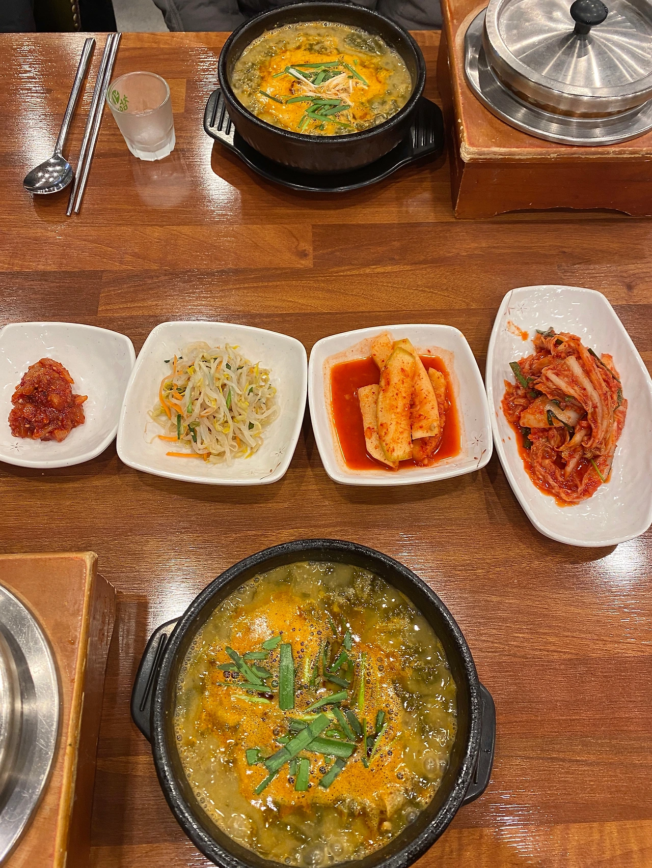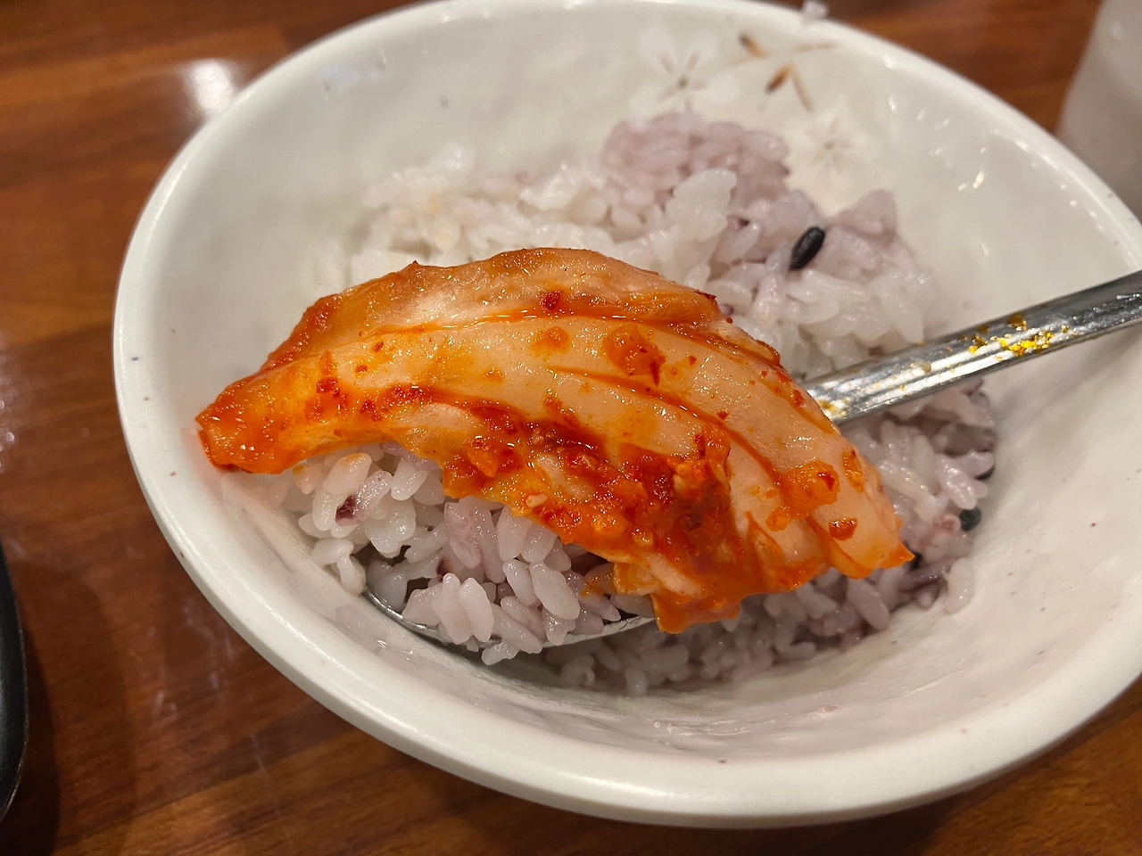 배추김치, 깍두기, 오징어젓, 숙주나물의 기본 찬도 함께 나온다. 저 중에서도 저 갓 담근 듯한 배추김치. 꽤나 일품이다.